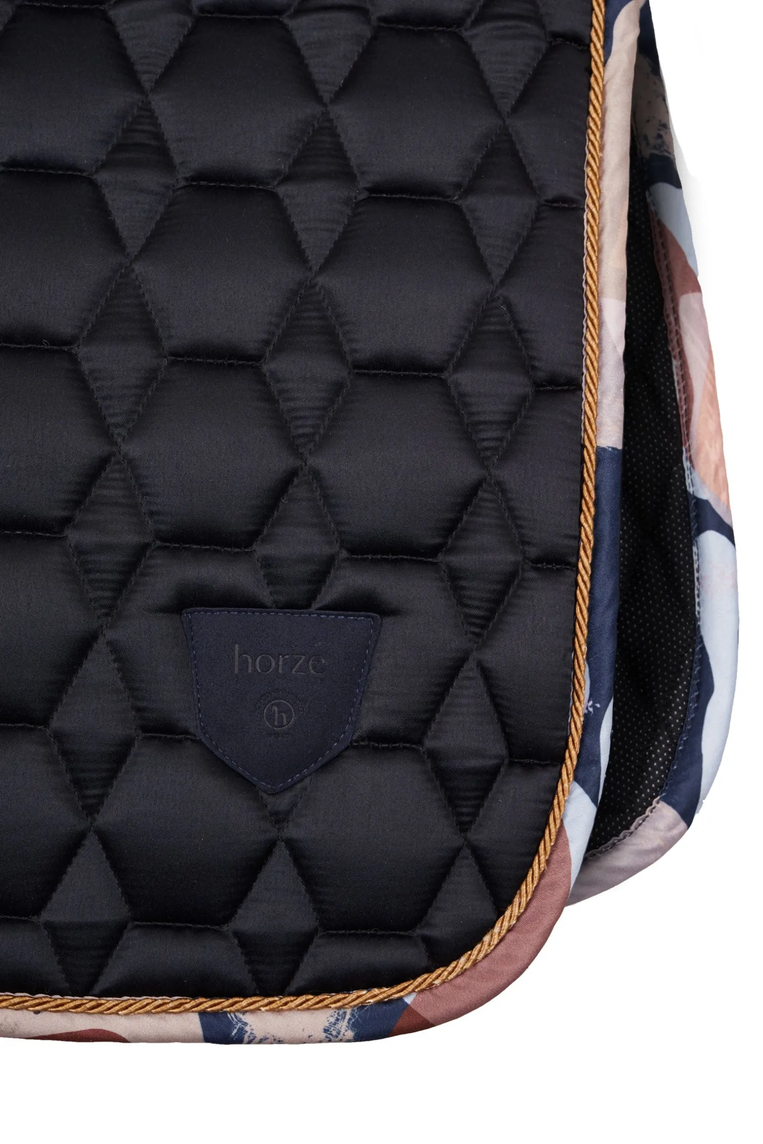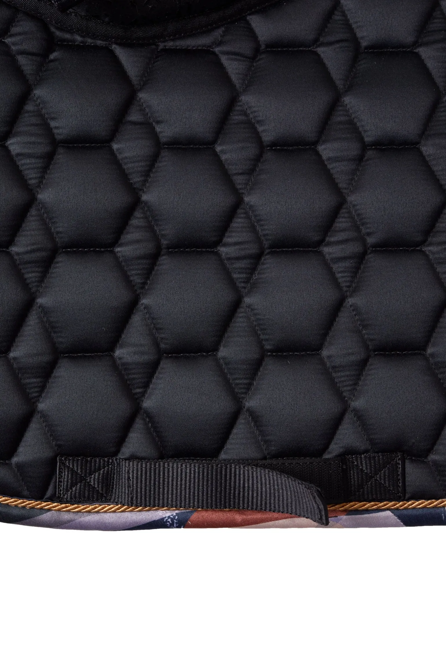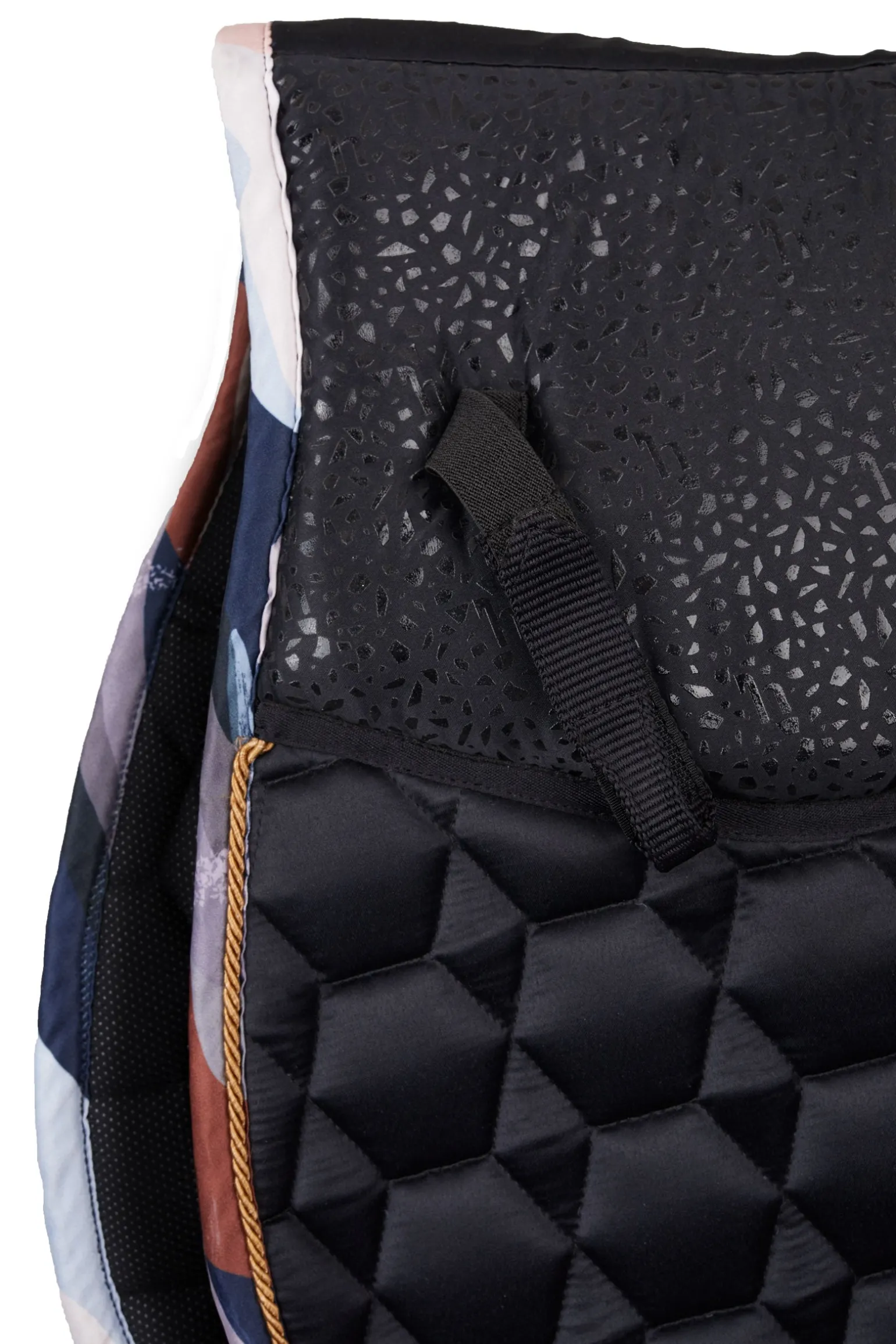 Diese Schabracke besteht aus einem satinähnlichen Material, das deinem Reitoutfit einen Hauch von Eleganz verleiht. Die gepolsterte Sattelfläche ist mit einem rutschfesten Silikonaufdruck versehen, der für einen sicheren und stabilen Sitz des Sattels sorgt. Die verstellbaren Gurtschlaufen und die langen Sattelbefestigungsriemen sorgen für eine individuelle und sichere Befestigung an deinem Sattel. Das gesteppte Muster sorgt für einen klassischen Look, während das feuchtigkeitsableitende Futter dein Pferd trocken und komfortabel hält. Mit der kontrastierenden Einfassung und dem Horze-Logo zeigt diese Schabracke, wie viel Liebe zum Detail in ihr steckt. Die Vielseitigkeitsschabracke Terrazzo von Horze ist ein Muss für jeden Reiter.