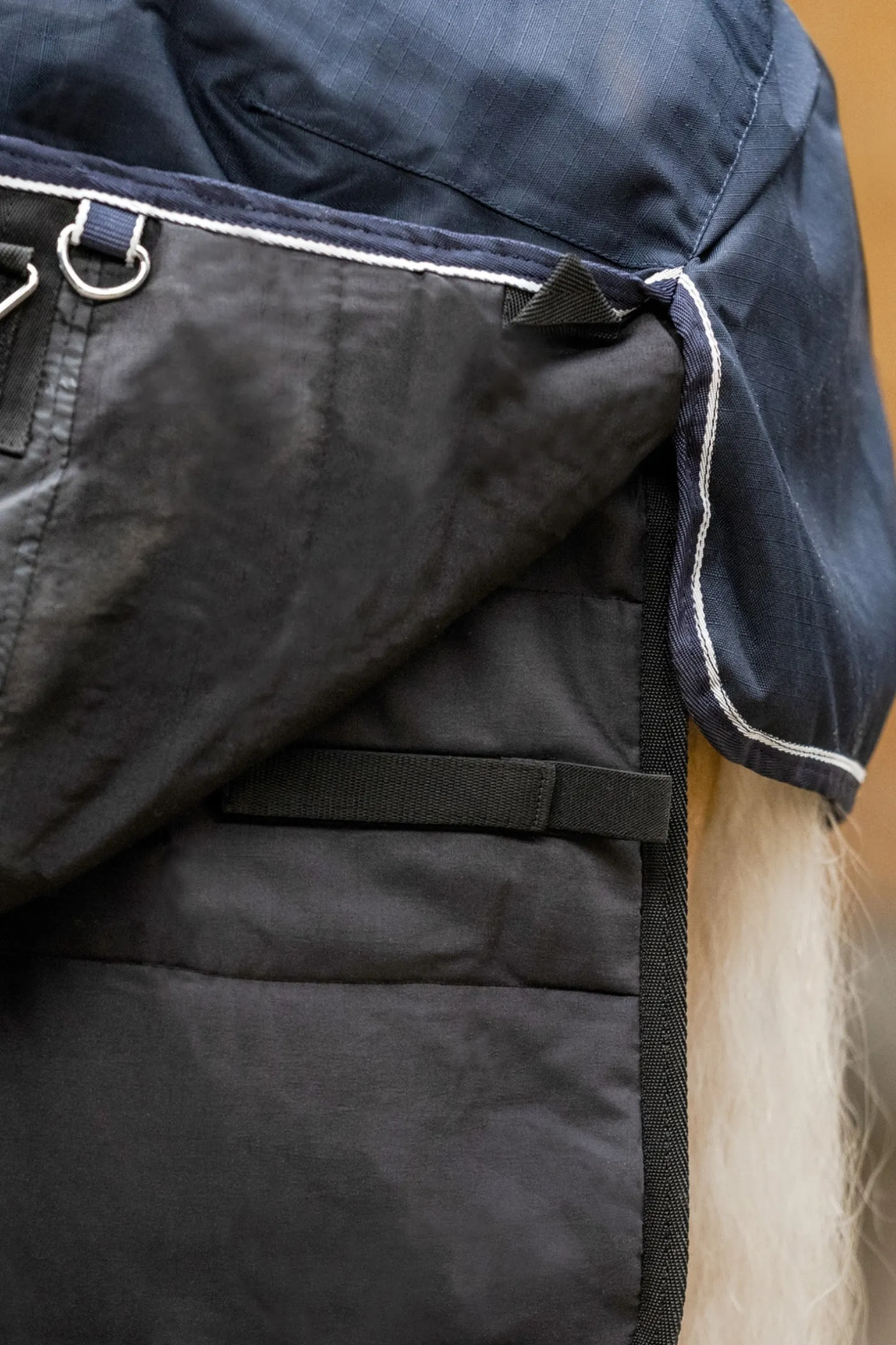 Warming, breathable underrug with 200 g/m² thermofill. The outer material has a silicone print in the back area which helps prevent the rug on top from slipping. Simple T-chest fastening with elastic and touch tape cover. 2 elastic touch tape straps in both the shoulder area and hind end for easy attachment to all Waldhausen turnout rugs