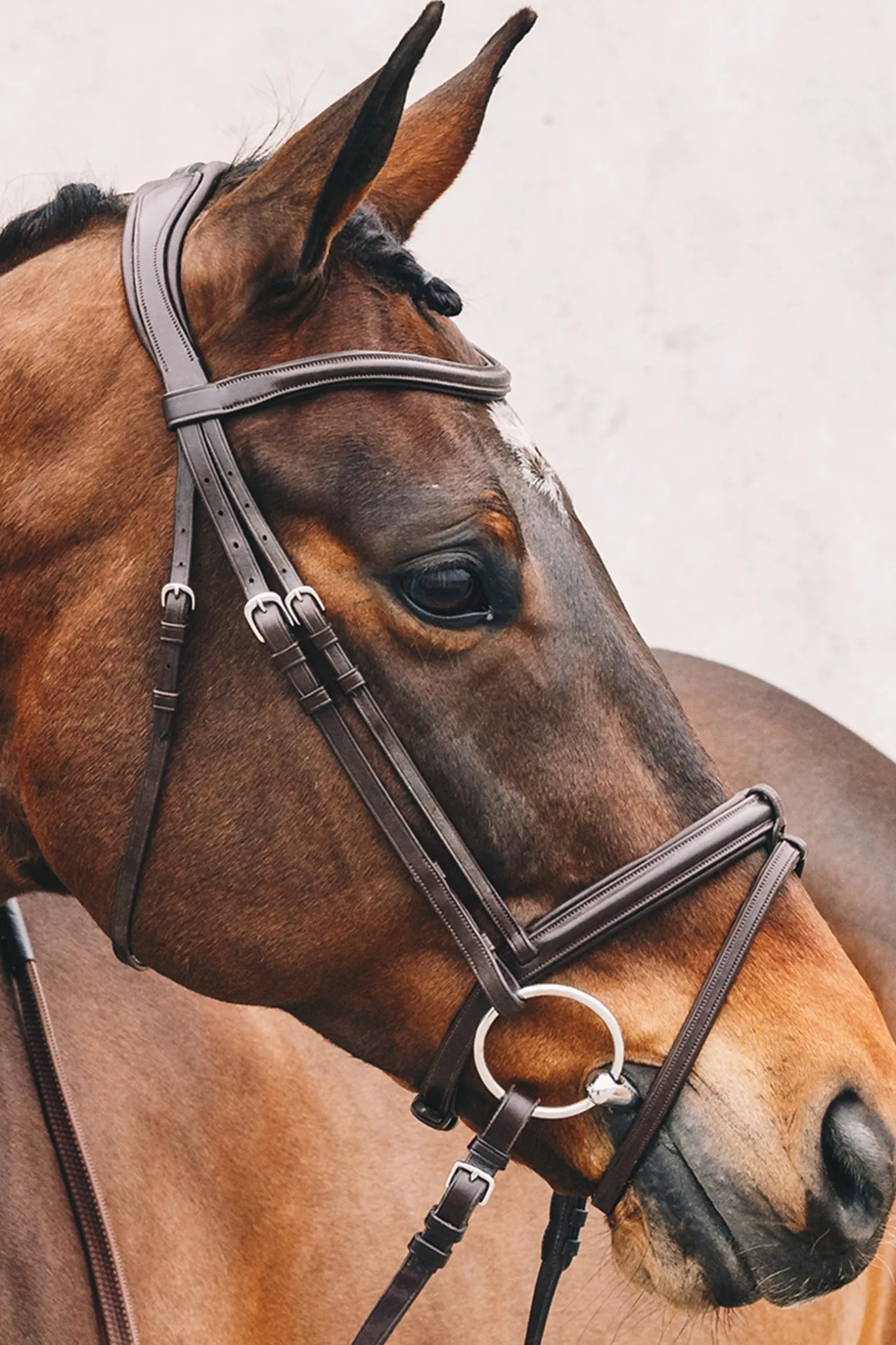 Vorgefertigtes Zaumzeug der Anatomic Line – Select & Mix – alle Vorteile bereits in einem Zaum vereint TOKYO SELECT verfügt über einen weich gepolsterten und anatomisch vorgeformten Nasenriemen. Ein besonderes Highlight ist der komplett abnehmbare Sperrriemen. Bei Bedarf kann der Sperrriemen einfach entfernt werden und nicht einmal die lästige Schlaufe bleibt übrig. Sperrriemen und Schlaufe sind ebenfalls sehr weich und speziell gepolstert. Das anatomisch vorgeformte, schmale Kopfstück hat einen einzigartigen Genickbereich, der speziell für die komplizierte Halsanatomie des Pferdes konzipiert wurde. Der markante Schnitt und die weiche Polsterung reduzieren den Druck im Nacken deutlich. TOKYO SELECT ist mit einem schlichten, geschwungenen Lederstirnriemen ausgestattet. Alle Teile sind auch einzeln in der Select & Mix – Kollektion verfügbar.