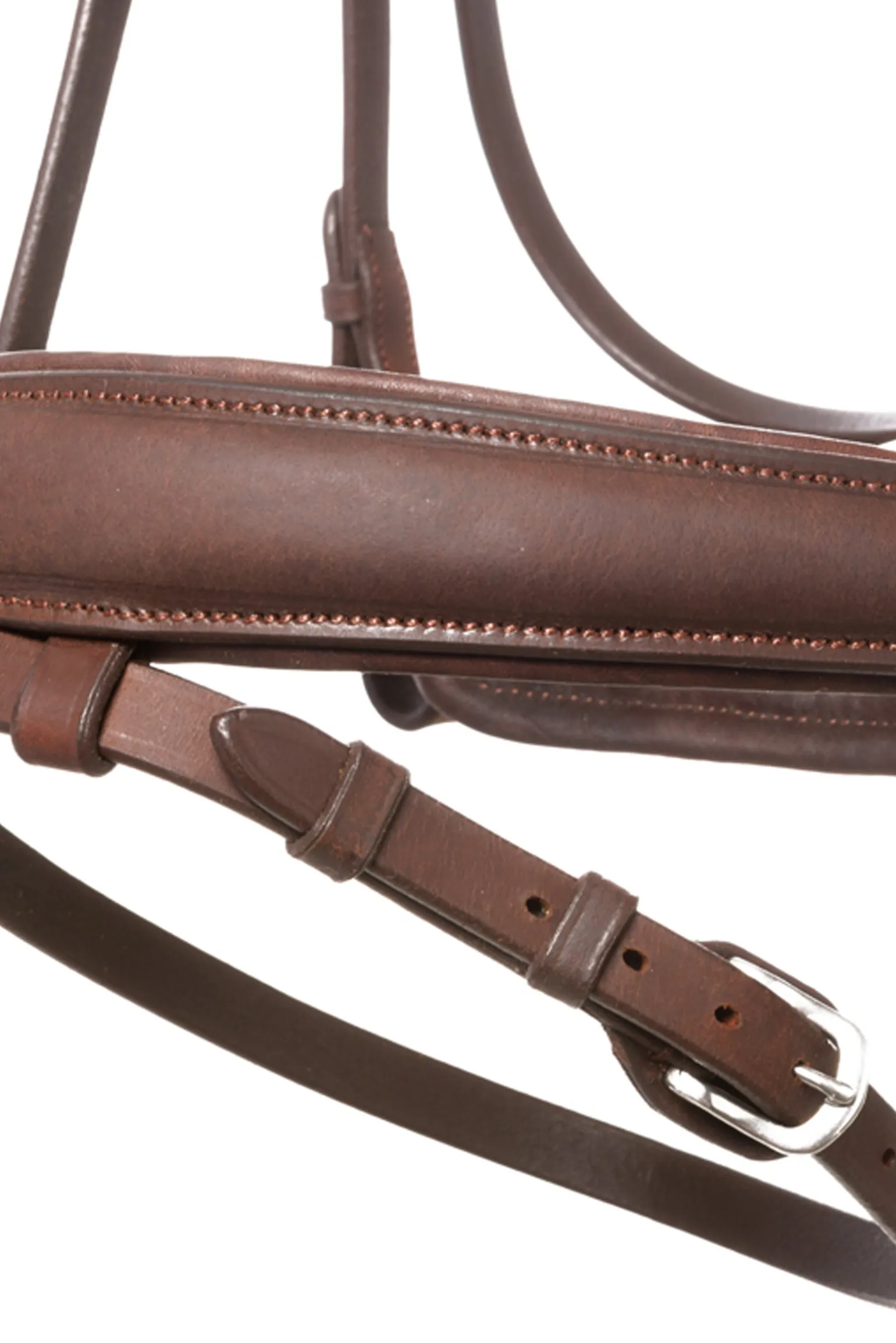 Geschmeidig, langlebig und klassisch – Trense Everlyn KavalSH4. Die Trense besteht aus erstklassigem, geöltem Leder und verfügt über ein anatomisch geformtes, sehr weich gepolstertes Genickstück mit großem Ohrenausschnitt, der die Nerven entlastet und den Ohren mehr Bewegungsfreiheit bietet. Die weiche Polsterung des Nasenriemens und Stirnriemens sorgt ebenfalls für besonderen Komfort für das Pferd. Der schräg verlaufende Kehlriemen sorgt dafür, dass er glatt anliegt und nicht nach vorne hängt. Die größeren Schnallen und ovalen Löcher ermöglichen ein einfaches Schließen. Das Stirnband funkelt mit großen und kleinen weißen Strasssteinen. Der Nasenriemen ist beidseitig verstellbar. Inklusive gummierter Zügel mit Stoppern (16 mm). KavalSH4 – abnehmbarer Sperrriemen ohne sichtbare Befestigung. Trensen mit der Bezeichnung „KavalSH4“ sind Trensen, bei denen der Sperrriemen entfernt werden kann. Das Besondere daran ist, dass die Befestigung des Sperrriemens nicht sichtbar ist, wie bei herkömmlichen Trensen mit abnehmbarem Sperrriemen. Das geölte Leder der Trense Everlyn ist pflanzlich gegerbt und hat seine natürliche Narbung. Während des Gerbprozesses werden hochwertiges, nicht emulgiertes Öl und Penetrationsmittel hinzugefügt, damit die Lederfasern geschmeidig sowie wasser- und schmutzabweisend werden. Dieser Prozess macht das Leder weich, langlebig und pflegeleicht.