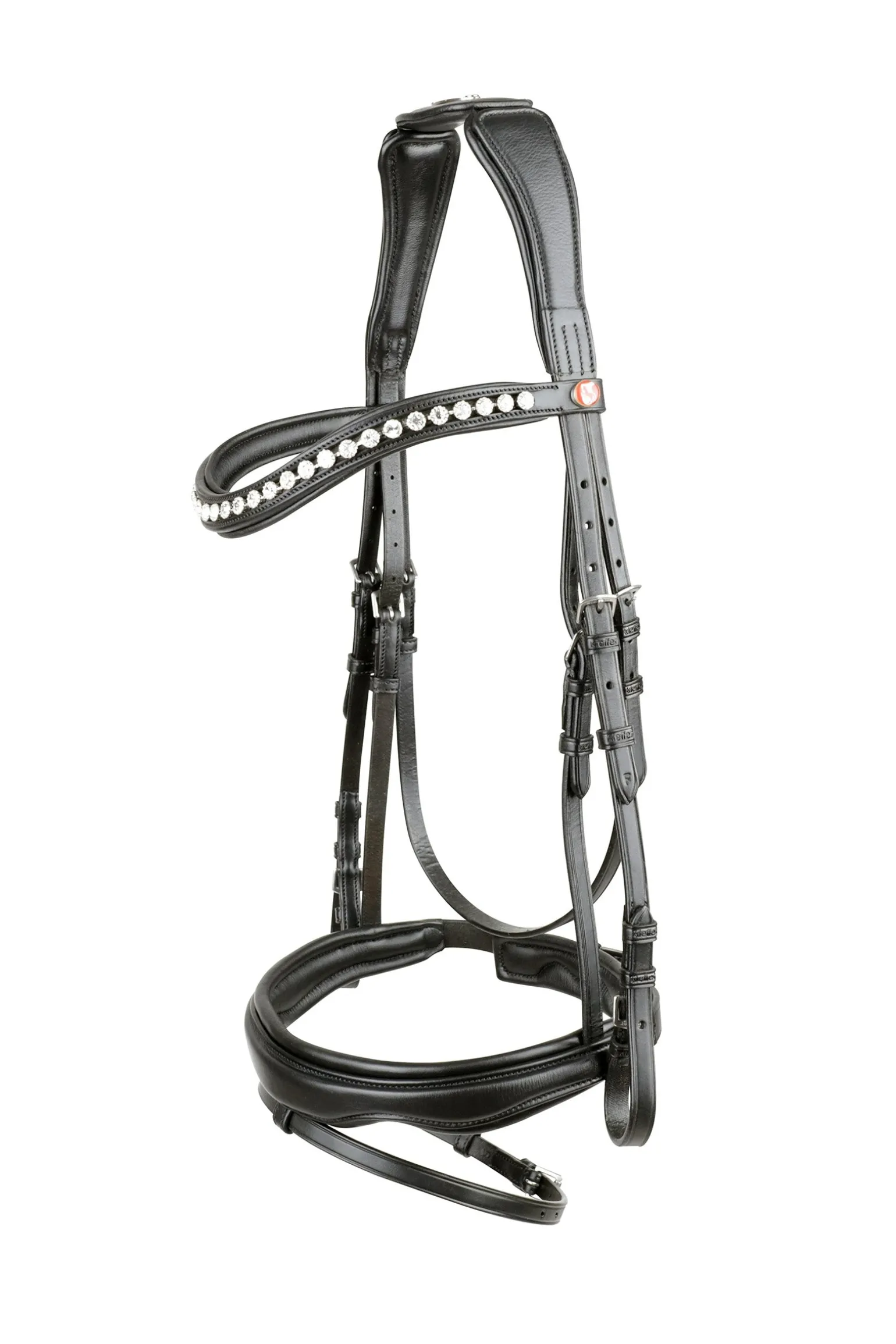 Trensenzaum Kieffer Ultrasoft® Gaya aus extraweichem Qualitätsleder steht für unschlagbaren Tragekomfort und schickes Design. Ein anatomisch geformtes, zweifach geteiltes Kopfstück sorgt für mehr Komfort und weniger Druck im Genick und an der Ohrmuschel. Das butterweich gepolsterte englisch kombinierte Reithalfter mit Kinnpolster sorgt für eine besonders schonende Druckverteilung auf dem Nasenrücken.