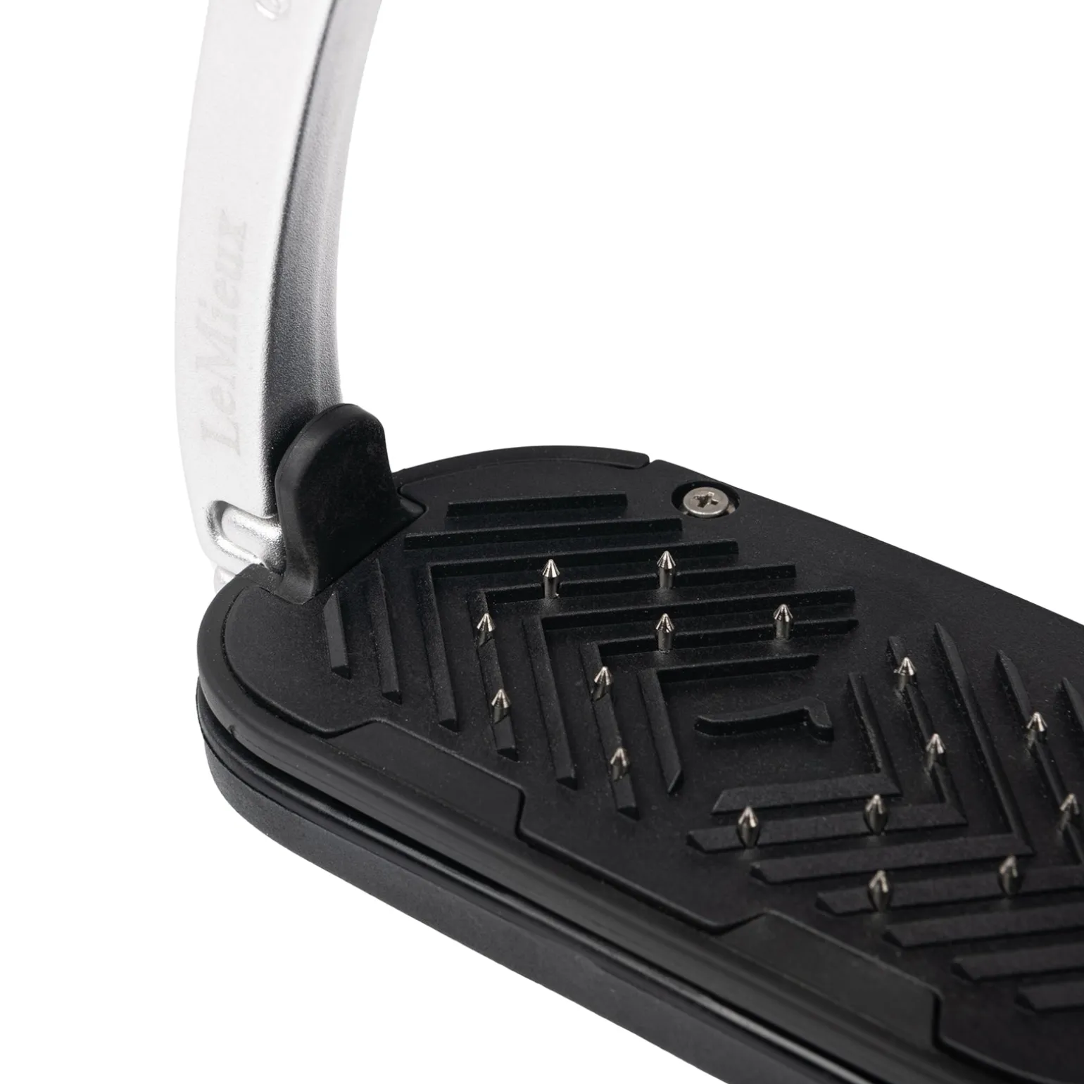 Die ergonomische Trittfläche des Control Steigbügels ist auf 0º eingestellt und hat eine quer verlaufende Grifffläche mit eingelassenen gehärteten Stahlstiften, die für guten Halt des Stiefels sorgen.