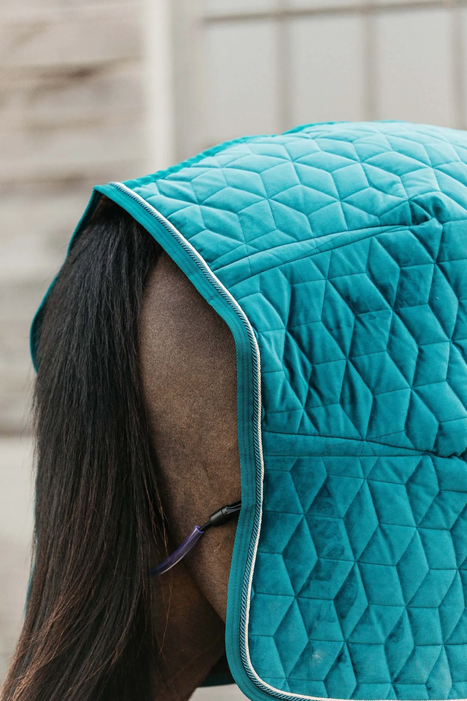Mit der Turnierdecke Velvet wirst du im Stall sicher auffallen. Die Decke ist mit 160g gefüllt und eignet sich im Winter perfekt als Stalldecke zu Hause oder beim Turnier. Die Außenseite der Decke ist aus einem weichen und schicken Samtstoff und einer raffinierten Steppschicht. Die Würfel-gesteppte Schicht macht es Pferden schwer, die Decke zu zerbeißen. Die Innenseite der Decke ist mit künstlichem Kaninchenfell ausgekleidet, das Scheuern verhindert. Das künstliche Kaninchenfell erzeugt auch winzige Lufteinschlüsse, die eine Isolierschicht um dein Pferd bilden und es extra warm halten.