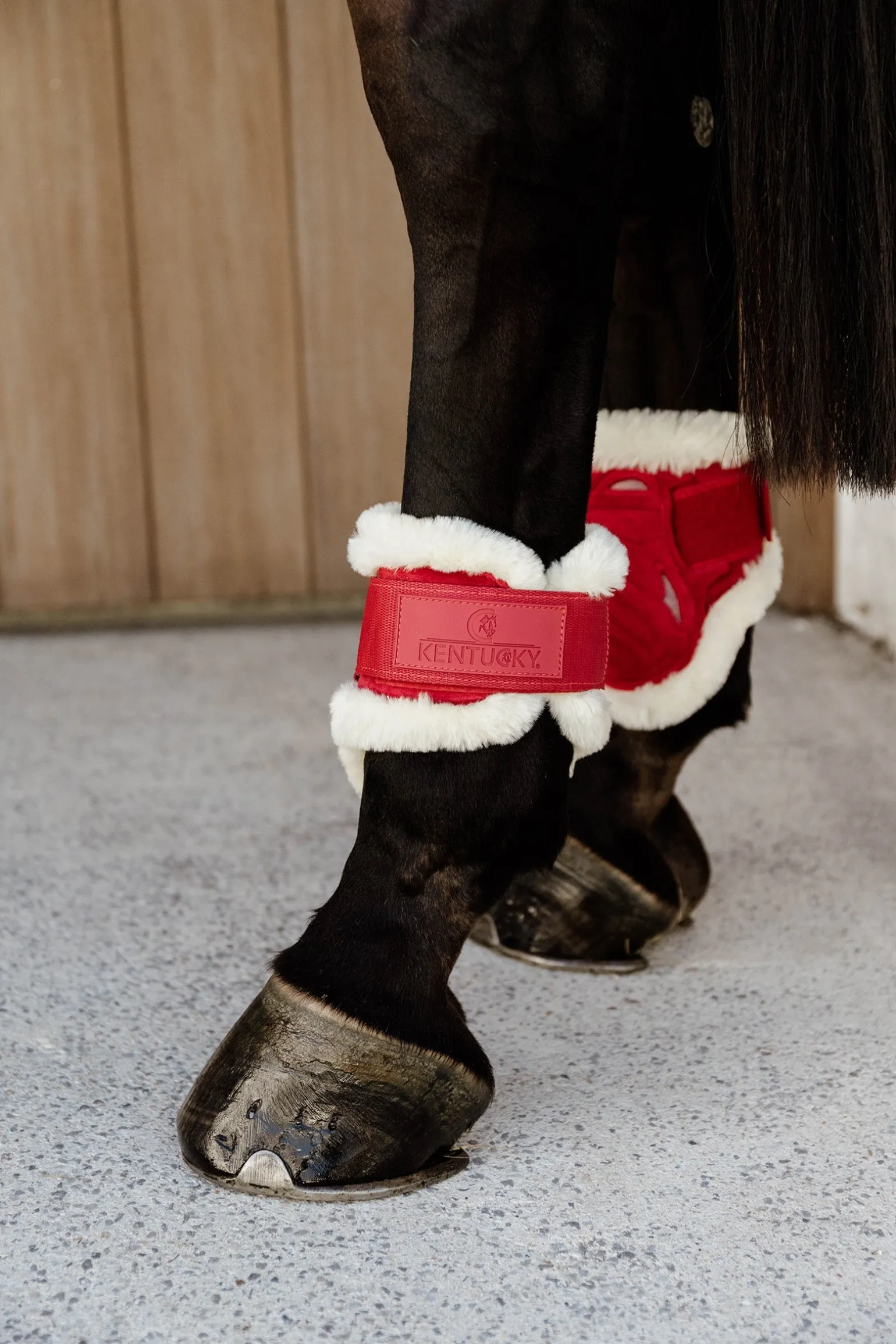 Die Streichkappen für Jungpferde mit veganem Lammfell – Velvet begeistern mit dem äußerst atmungsaktivem veganem Lammfell, das seit vielen Jahren auch für Kentuckys berühmtes Transporthalfter die Turnierdecke und für Sattelgurte