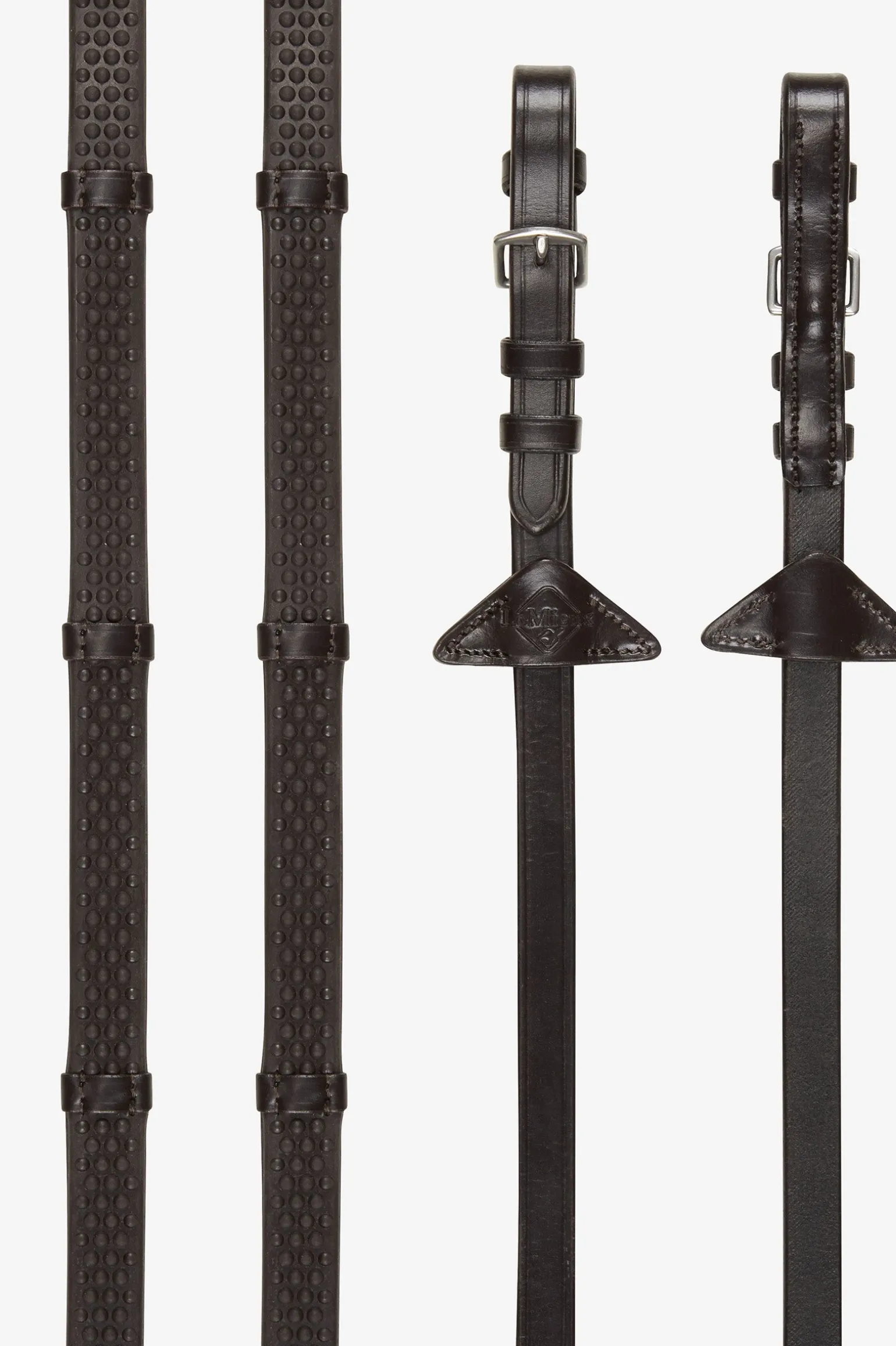 Diese Zügel sind einfach und leicht zu handhaben und eignen sich besonders für Einsteiger oder für die schnelle Arbeit. Die Martingalstopper aus Leder mit dem Markenzeichen von LeMieux sorgen für einen stimmigen Look.