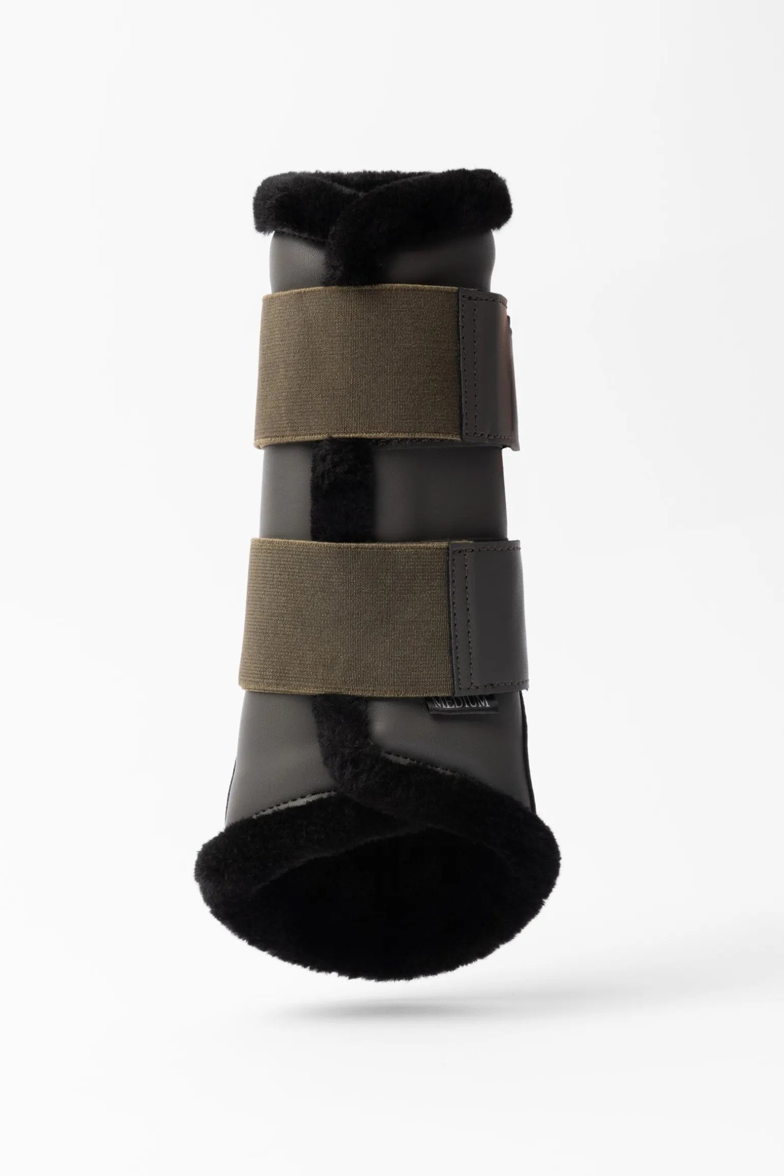 Unsere B Vertigo Wellington Gamaschen sind aus strapazierfähigem Kunstleder gefertigt und mit weichem Kunstfell gefüttert. Klettverschlüsse und Gummizüge sorgen für einen sicheren Sitz am Pferdebein. Der klassische Look lässt sich leicht in deine bisherige Ausrüstung integrieren. Kombiniere diese Gamaschen mit dem Rest unseres B Vertigo Wellington-Sortiments, um ein komplettes Outfit zu erhalten!