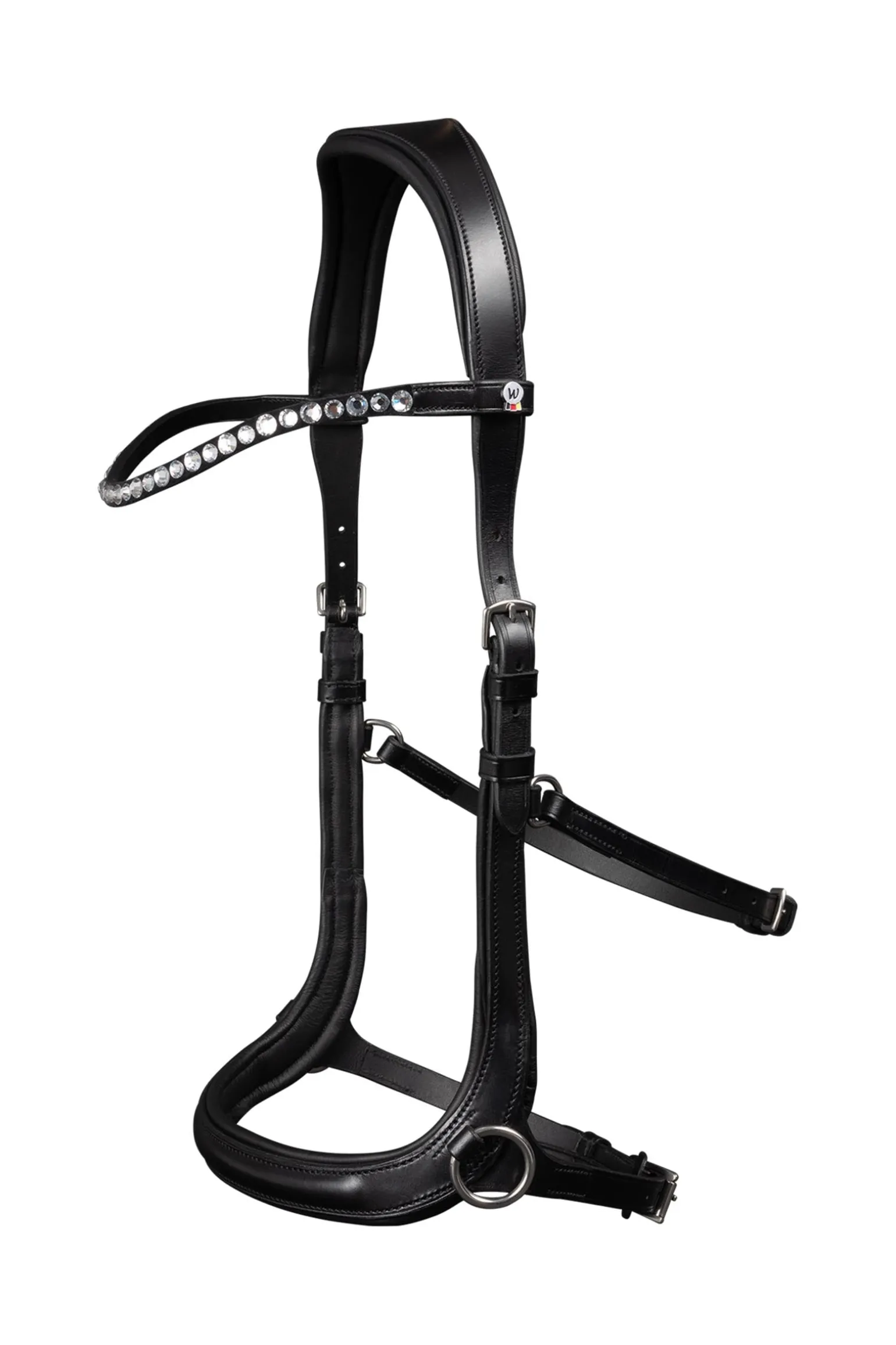 Die schöne gebisslose Trense ist aus feinstem Leder gefertigt und verfügt über ein schmuckvoll verziertes Stirnband. Sie ist anatomisch geformt für das Wohlbefinden deines Pferdes.