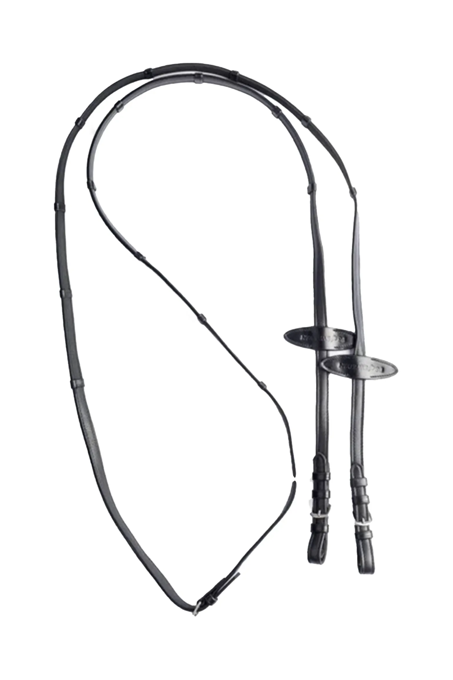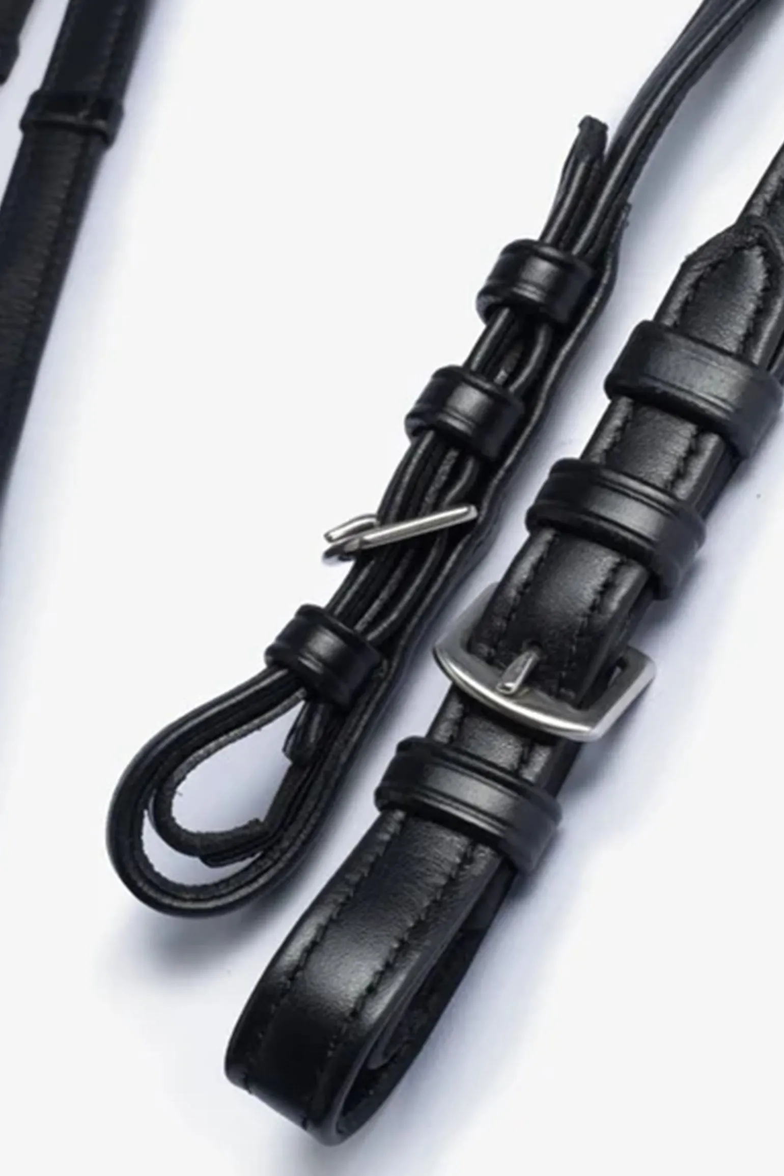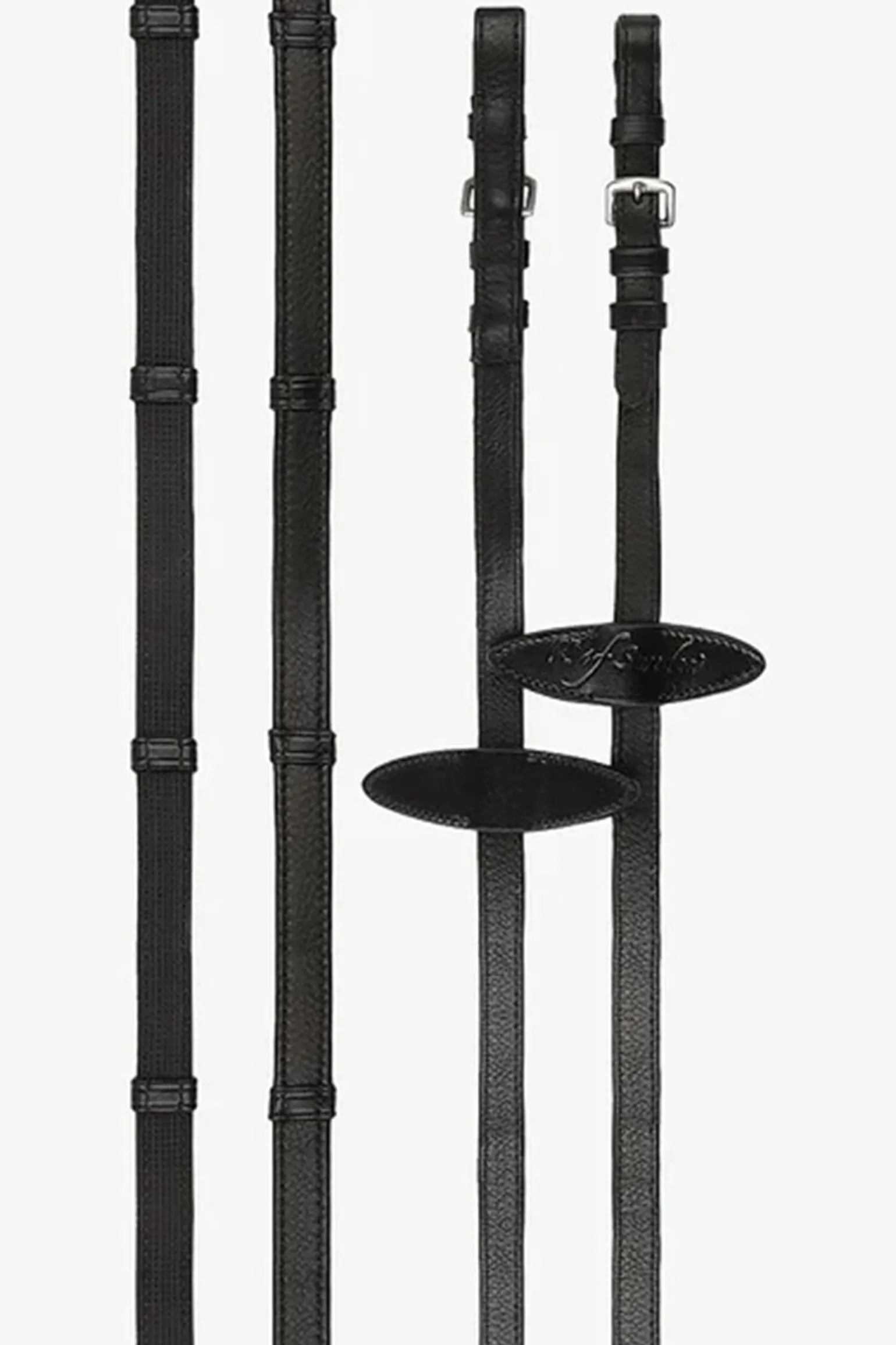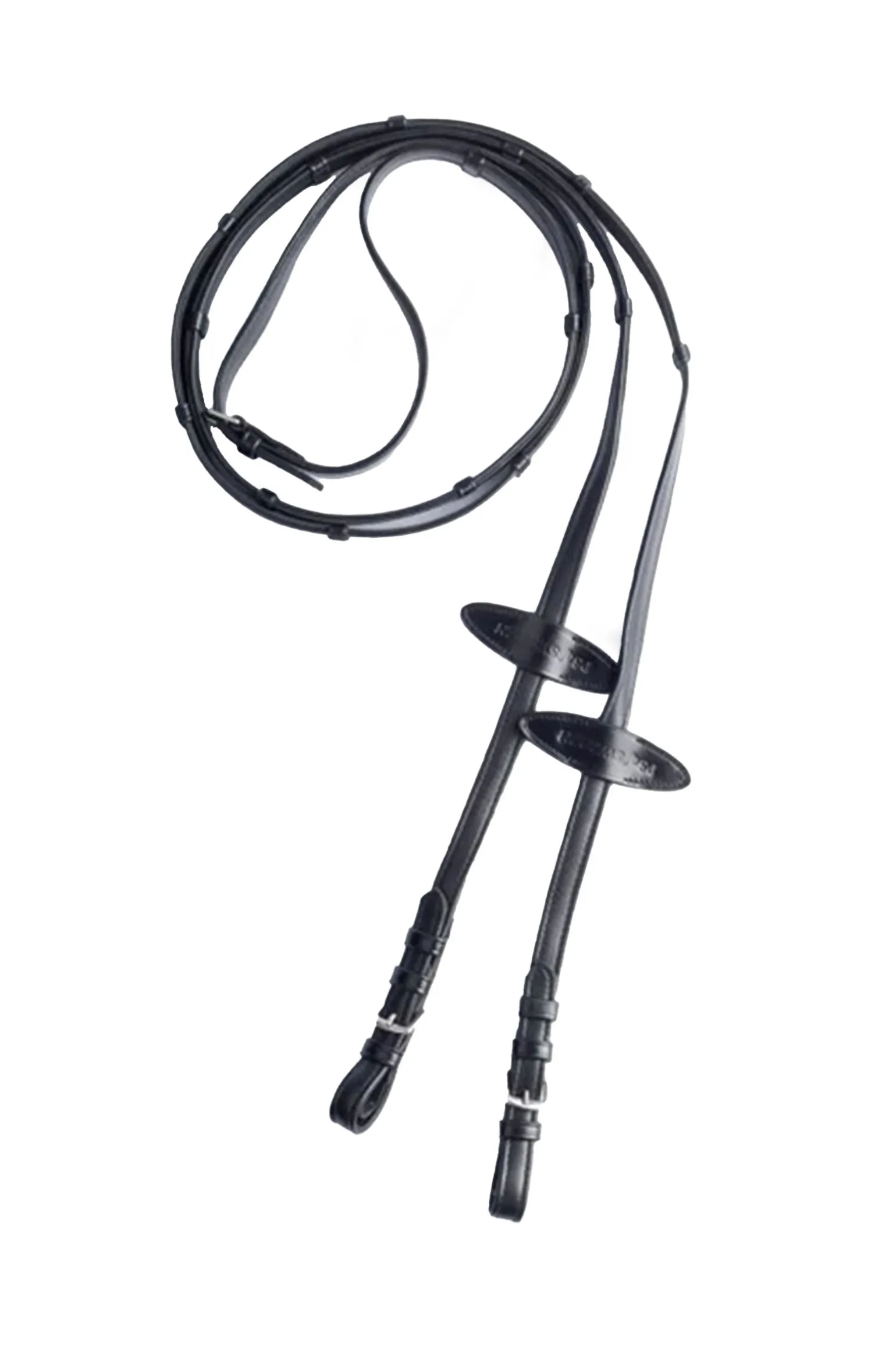 Sehr weiche und bequeme Zügel aus hochwertigem englischem sehr weichem Leder, kombiniert mit Supergrip an der Innenseite für optimalen Halt und Komfort. Die Zügel verfügen über PS’ patentiertes elastisches Cradle™ (aus Polyester), das dem Pferd einen weicheren Kontakt zwischen Maul und Hand bietet. Wenn das Pferd die Zügel ohne Cradles™ bevorzugt, können diese durch einfaches Abnehmen leicht entfernt werden. Die Zügel sind auch mit Griffmarkierungen und Martingalstoppern mit PS-Logo ausgestattet.