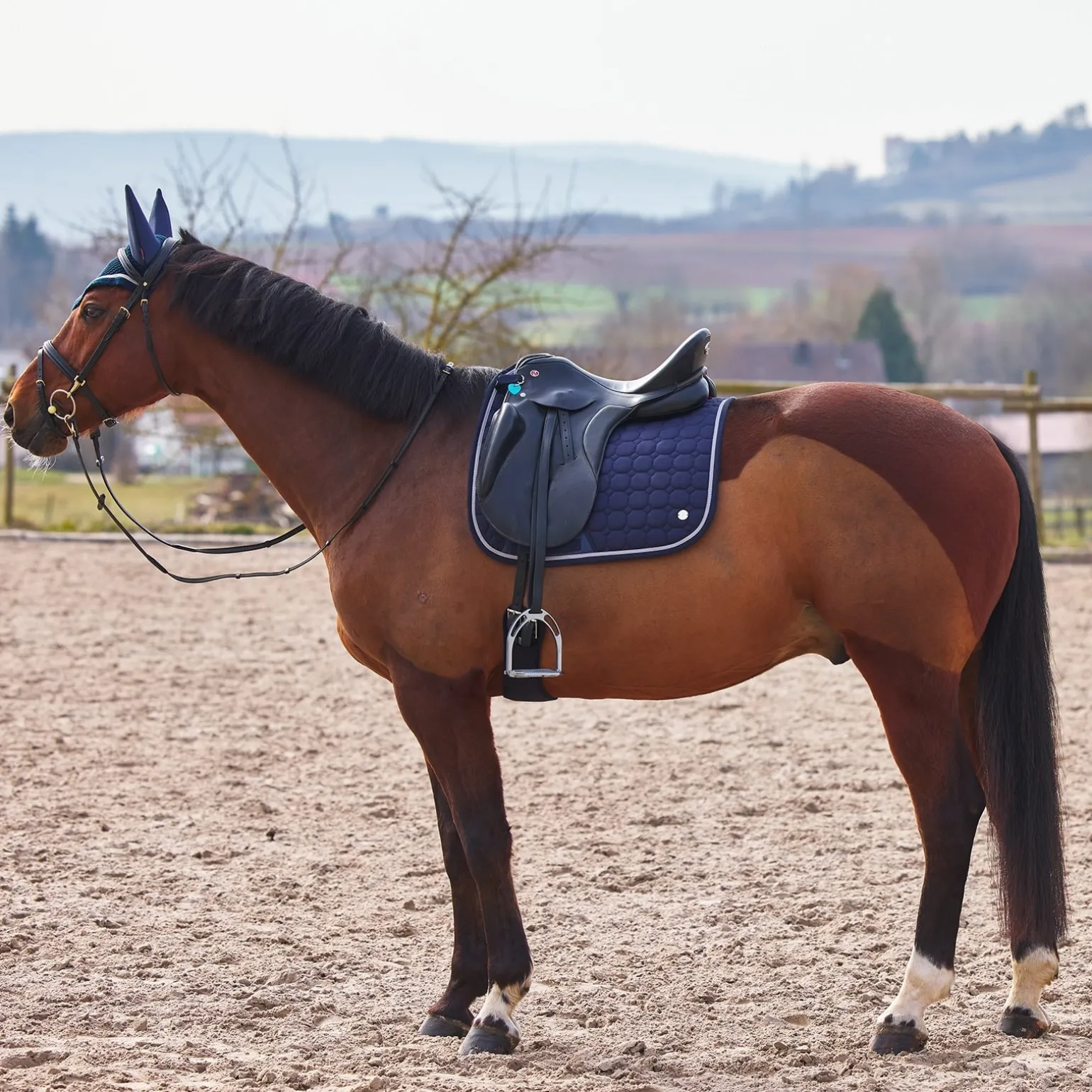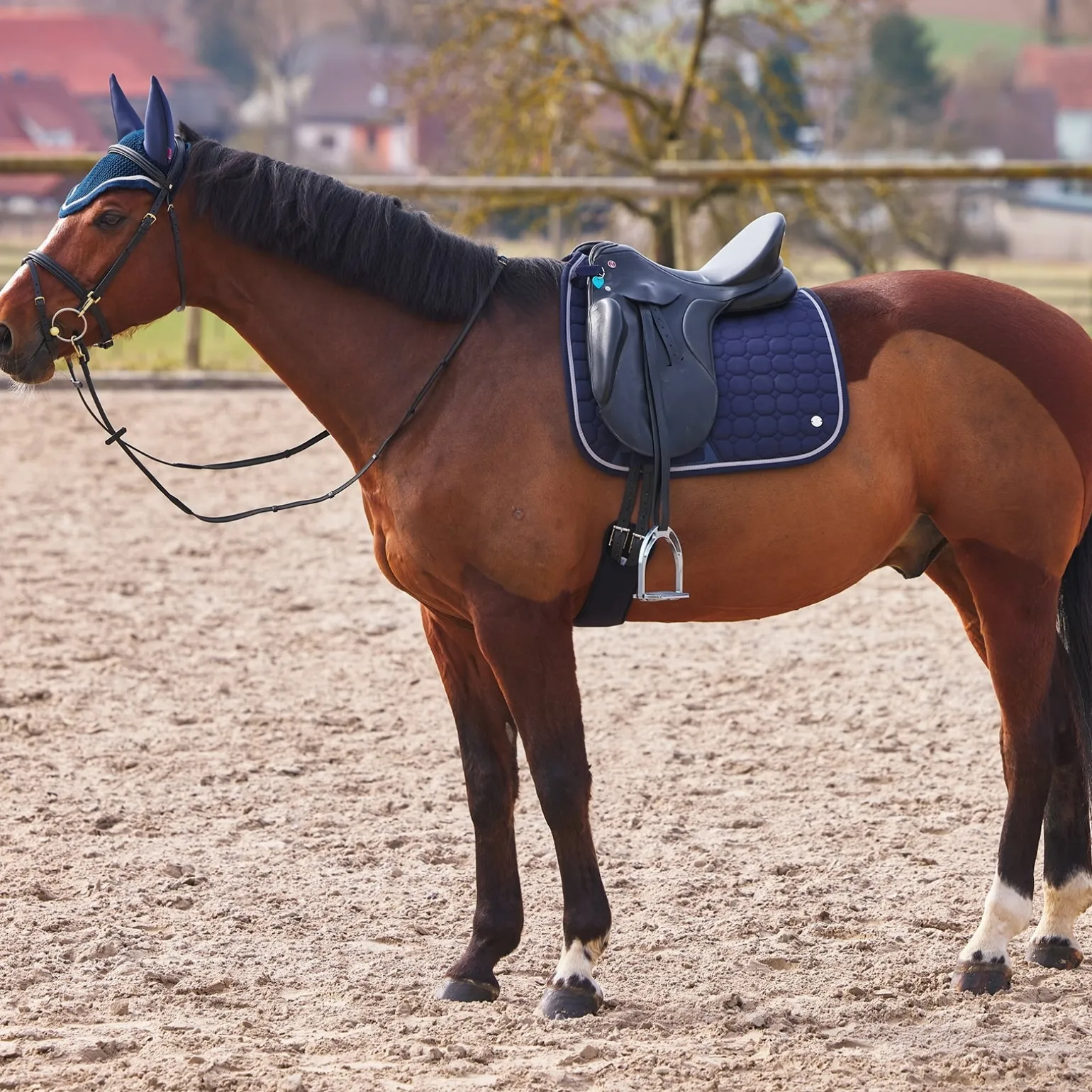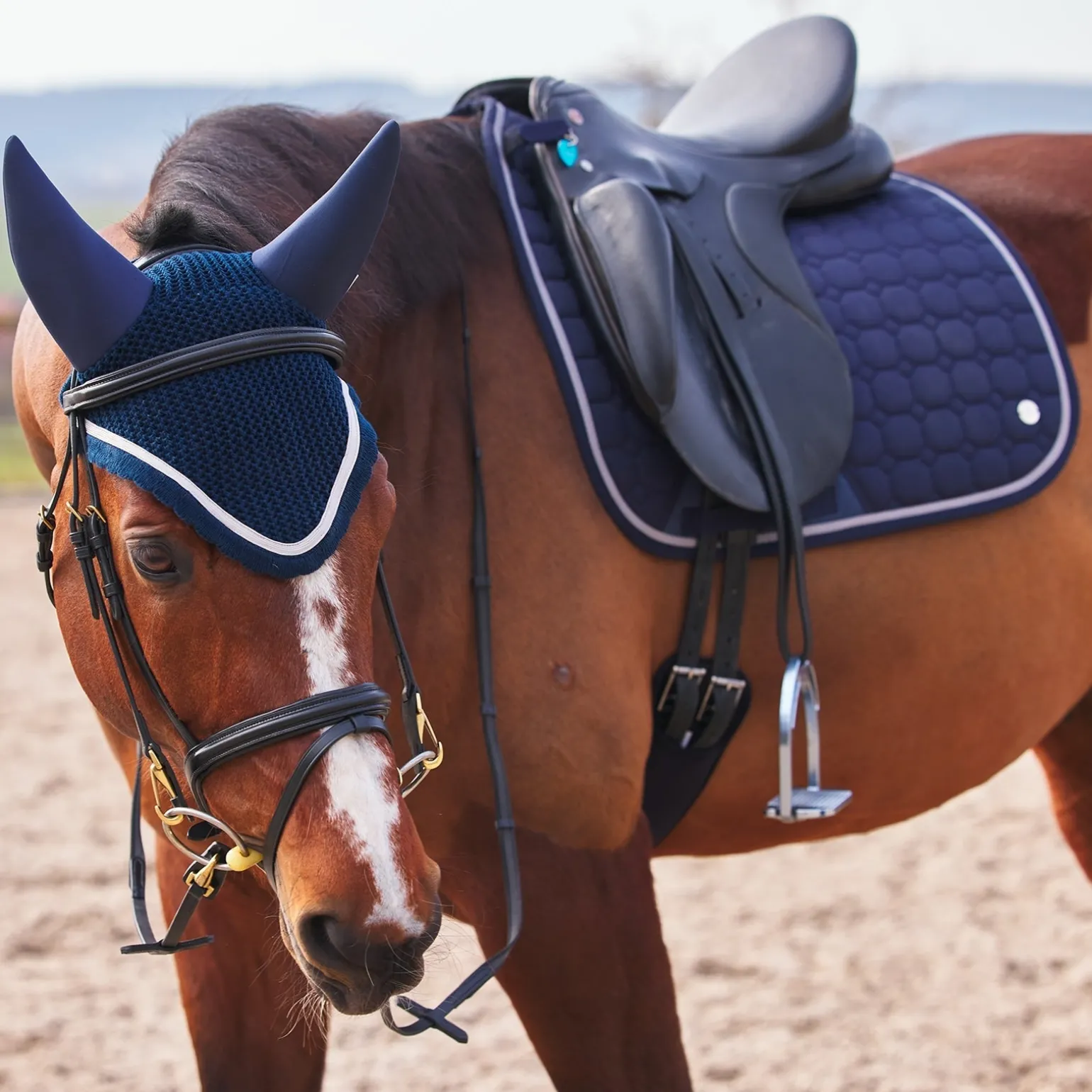 Die B Vertigo Zurich Schabracke ist in sportlicher Form mit luxuriöser Steppung gestaltet. Der speziell behandelte Stoff hält Staub und Schmutz fern und das schnelltrocknende Futter verhindert das Aufstauen von Feuchtigkeit. Klassische Farben und das coole Logo-Band entlang der Wirbelsäule machen diese Schabracke nicht nur zeitlos, sondern auch stylisch. Kombiniere sie mit der Zurich Fliegenhaube (#22919) für einen kompletten Look.