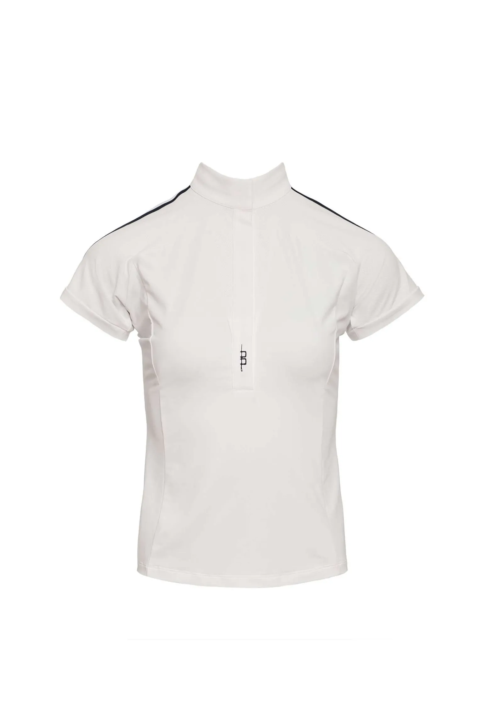Das Evora Competition Shirt hat eine leistungsorientierte Passform mit klaren sportlichen Details. Dieses kurzärmelige, weiße Turniershirt besteht aus feuchtigkeitsableitendem Material und atmungsaktiven Mesh-Einsätzen an Latz, Rücken und sportlich geschnittenen Ärmeln.