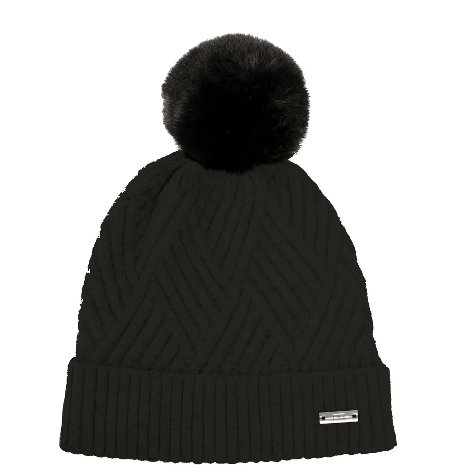 Luxuriöse Kaschmir-/Wollfasern. Mit Fleece gefütterte Wollmütze. Abnehmbare Kunstpelz-Bommel.