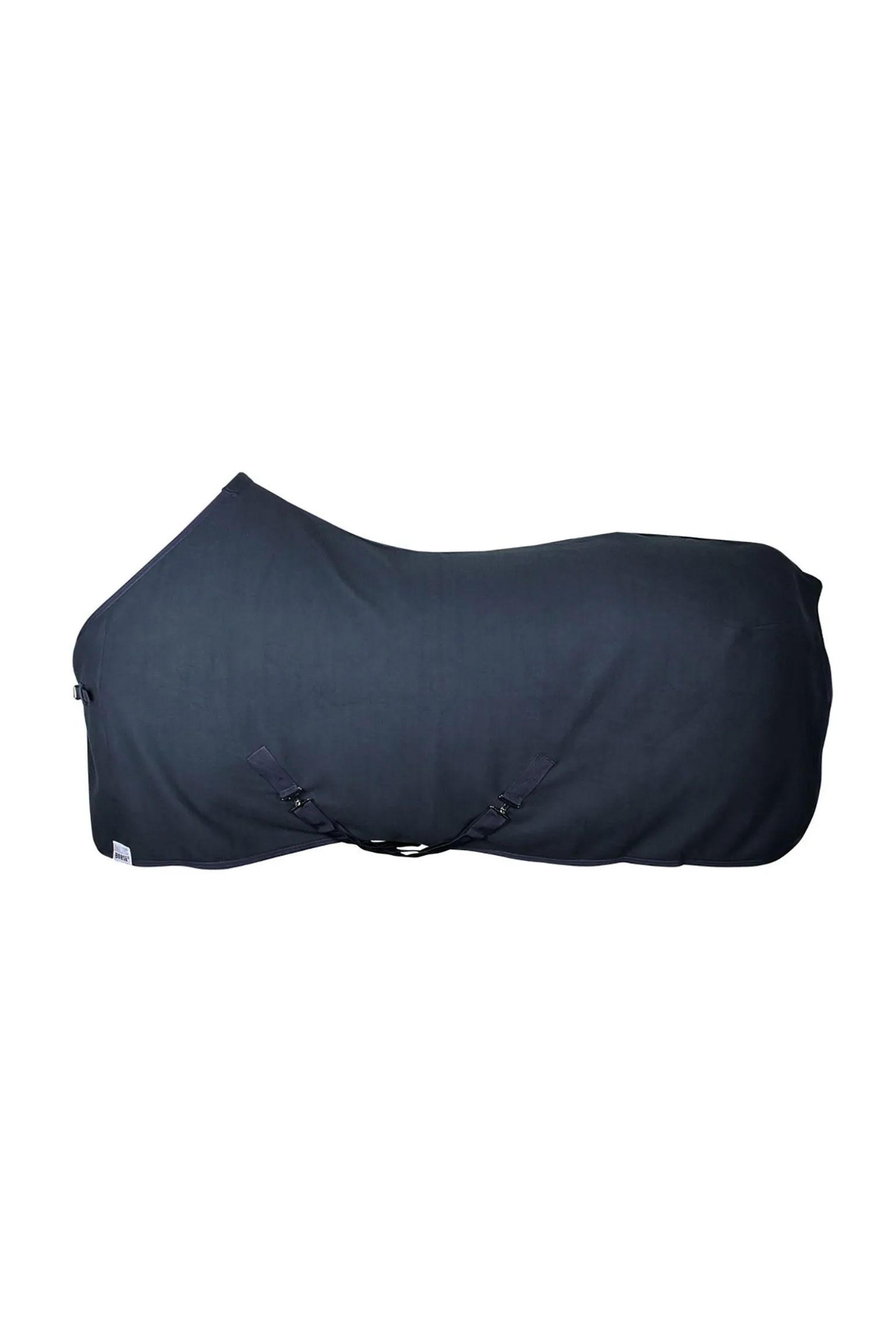 Fleecedecke mit einem Brustverschluss, Schweifriemen und Kreuzbegurtung.
