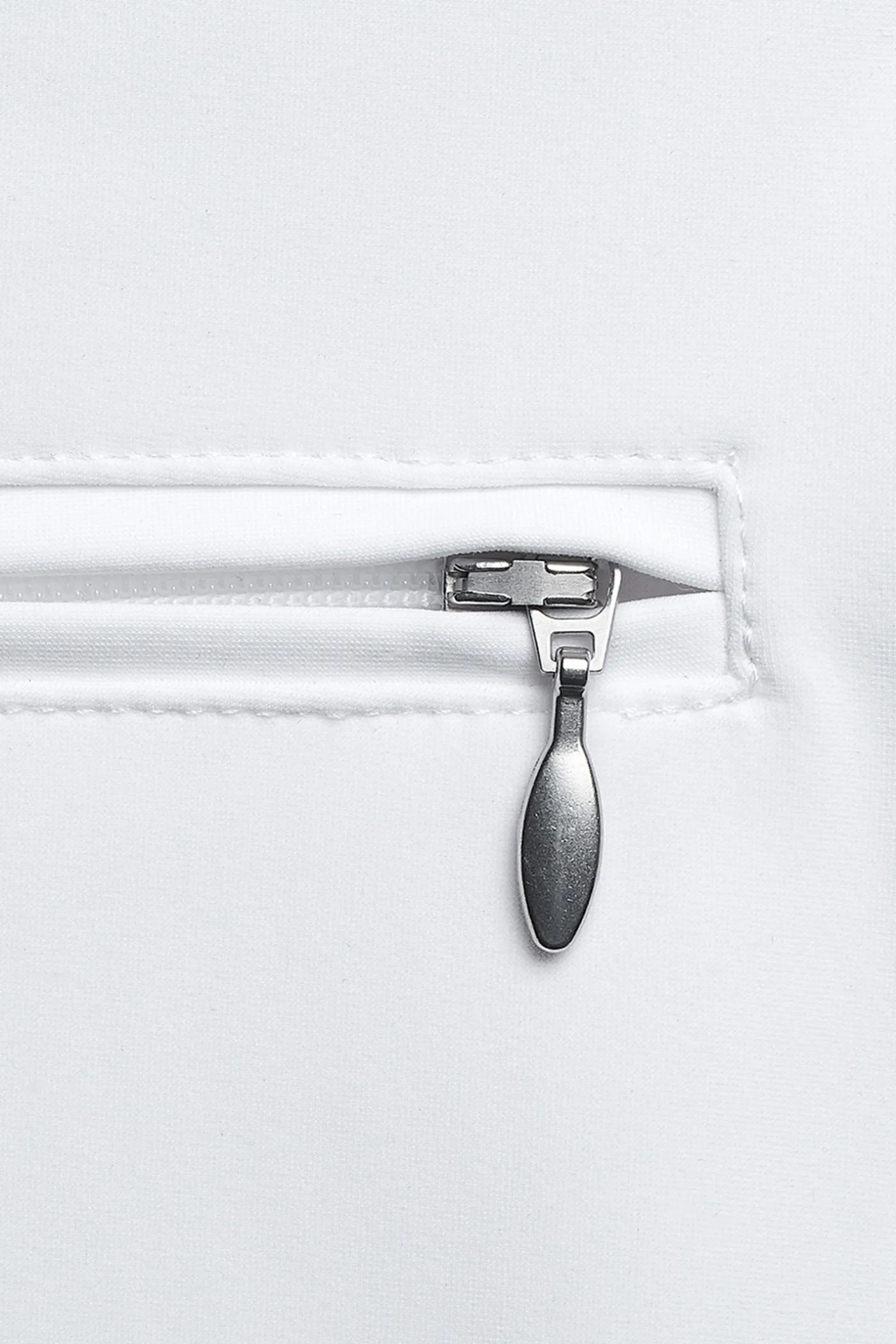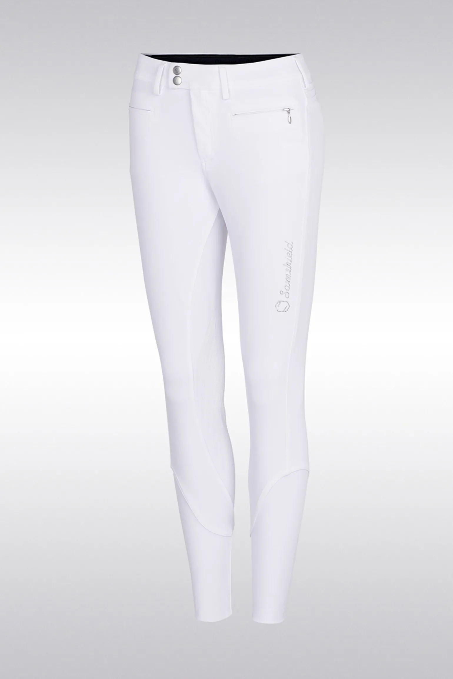 Die Adele Reithose bietet Reitern Komfort und technische Leistung. Das maßgeschneiderte Design aus strapazierfähigem, hochelastischem Material und die Falten am Rücken sorgen für eine perfekte Passform. Die Adele Reithose bietet einen „zweite Haut“-Effekt für optimalen Komfort. Das elastische Material garantiert hohe Atmungsaktivität und Windschutz. Der Silikon-Kniebesatz sorgt für Stabilität und Halt im Sattel. Das Kompressionsgewebe bietet eine perfekte Passform der Hose. Das elastische Band im Bund ist mit Silikon ausgestattet, um ein Hochrutschen des Shirts zu verhindern. Dank der speziellen Konstruktion des Materials bietet die Adele Reithose Schutz vor UV-Strahlen. Die Reithose ist mit einem Swarovski® Samshield-Logo am Oberschenkel und Crystal Fabric Swarovski® an den Gesäßtaschen verziert, was technische Leistung und Eleganz kombiniert.