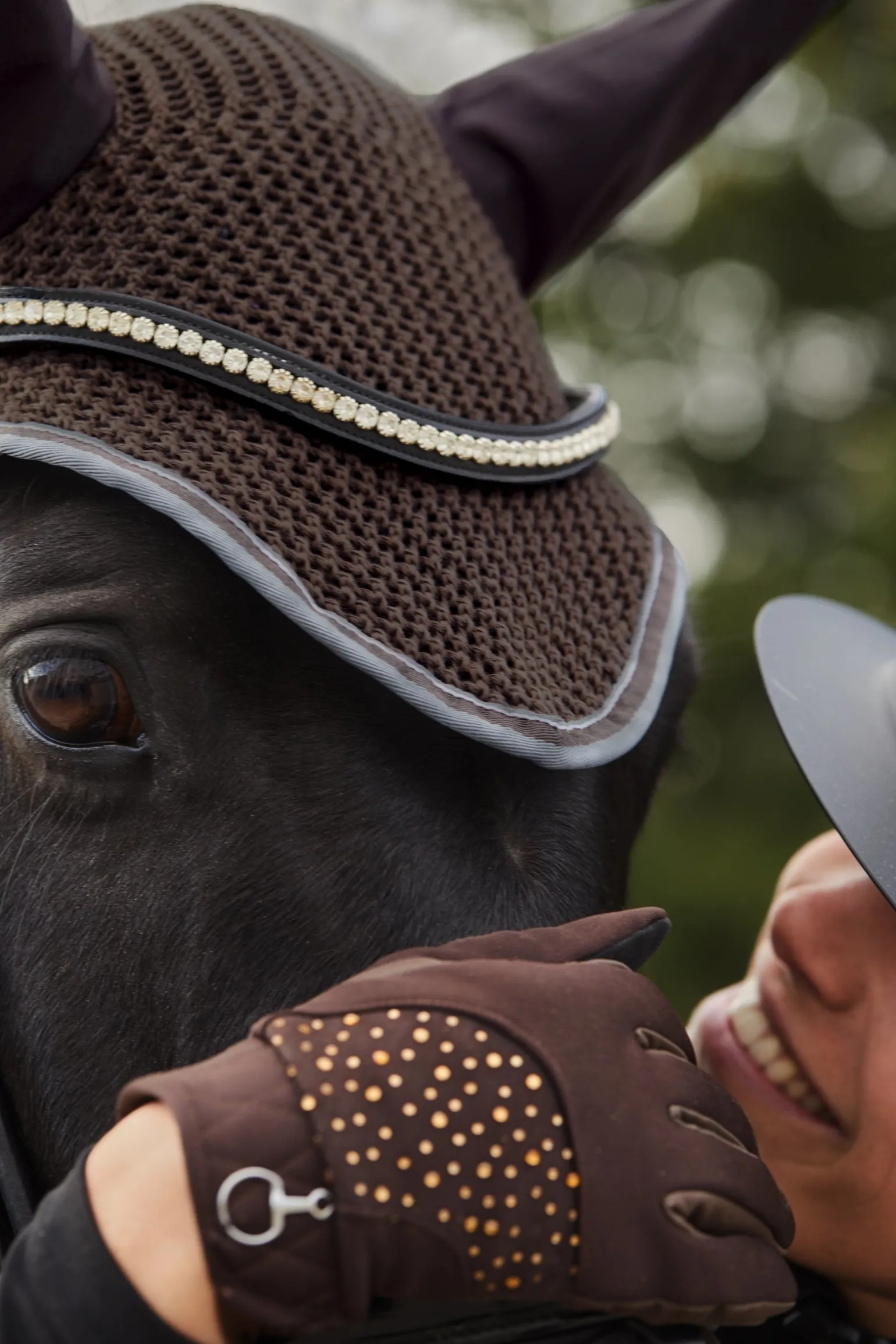 Unsere Adepto Fliegenhaube ist aus zartem gehäkeltem Stoff mit Ohren aus weicher Baumwolle gefertgit. Die gestreifte Einfassung passt zur Ohrenpartie und sorgt für ein besonderes Detail. Kombiniere sie mit der Adepto Schabracke (#17343 oder #17353) für einen passenden Look.