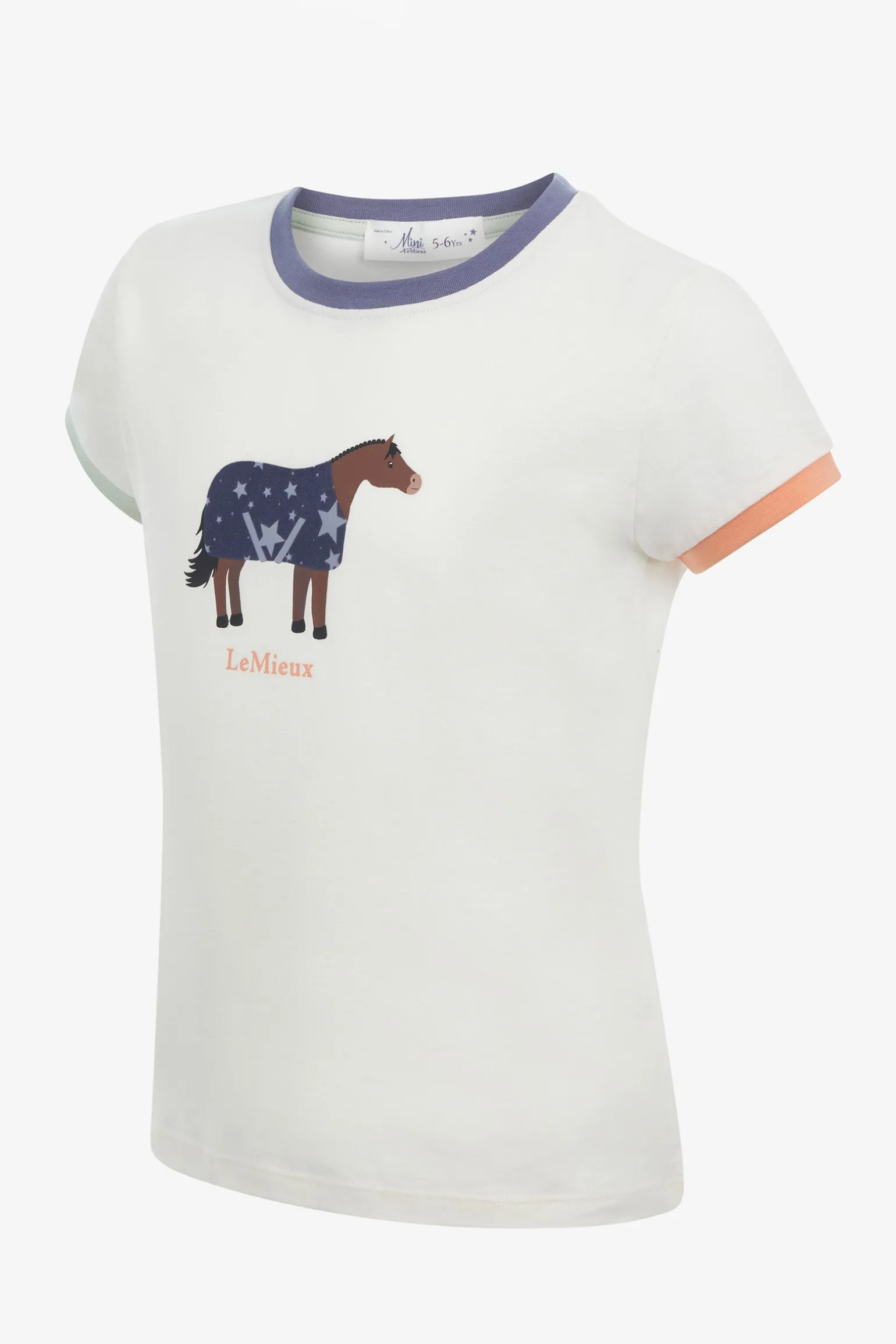 Das LeMieux Kids Alex Tee besteht aus superweichem, angenehm zu tragendem Material für ganztägigen Komfort. Eine spielerische und stilvolle Wahl für junge Reiterinnen und Reiter.