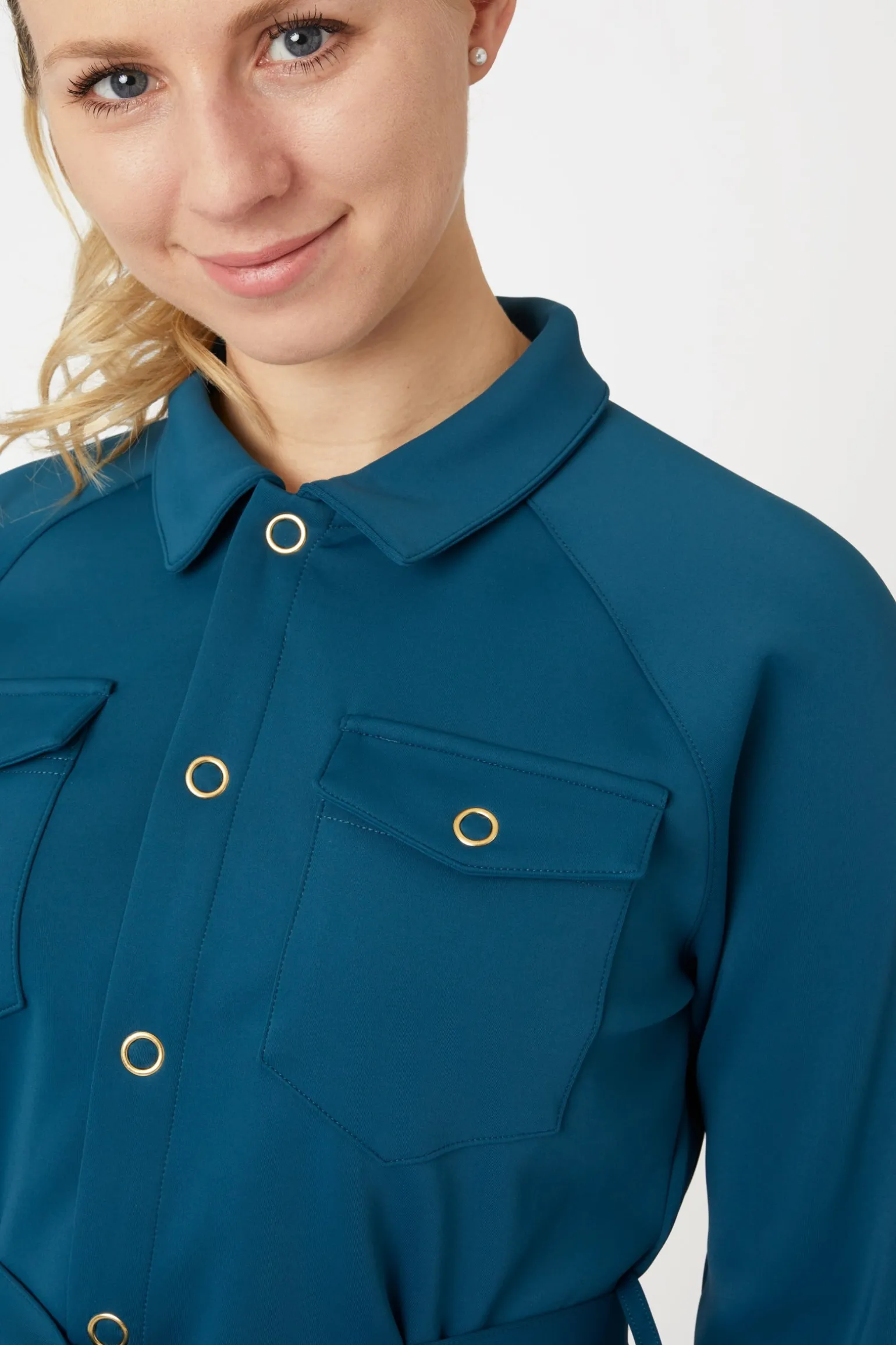 Die Alyssa Hemdjacke für Damen ist eine Kombination aus einem klassischen Hemd und einer leichten Jacke. Der lockere Schnitt kann dank des abnehmbaren Gürtels trotzdem schmeichelhaft sein. Geräumige Brusttaschen und Reißverschlusstaschen auf der Vorderseite bieten dir viel Platz, um Werkzeuge oder Wertsachen schnell zu verstauen. Der leichte Scuba-Stoff ist atmungsaktiv und schmutzabweisend und bietet UV-Schutz, was ihn perfekt für Tage auf dem Hof macht.