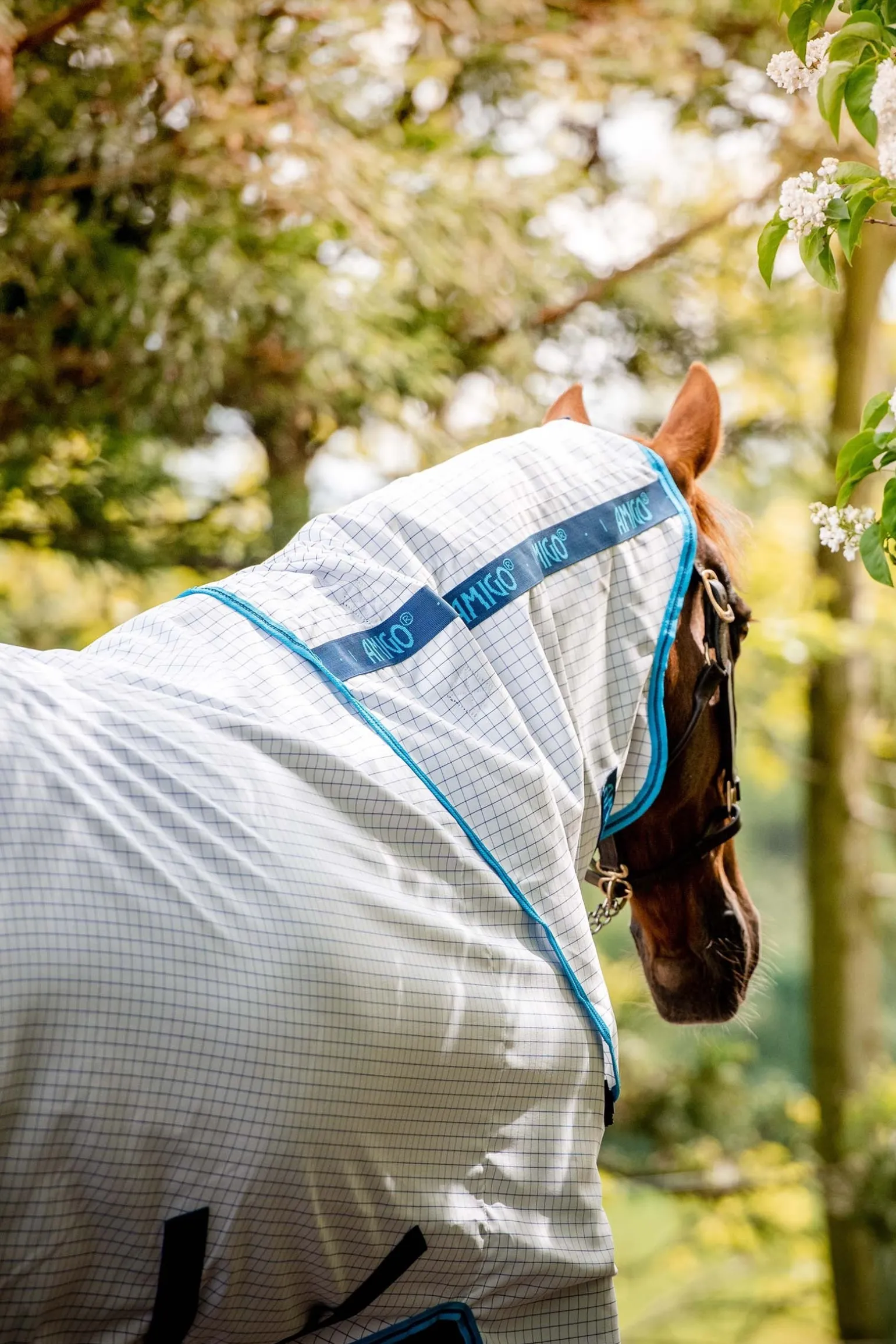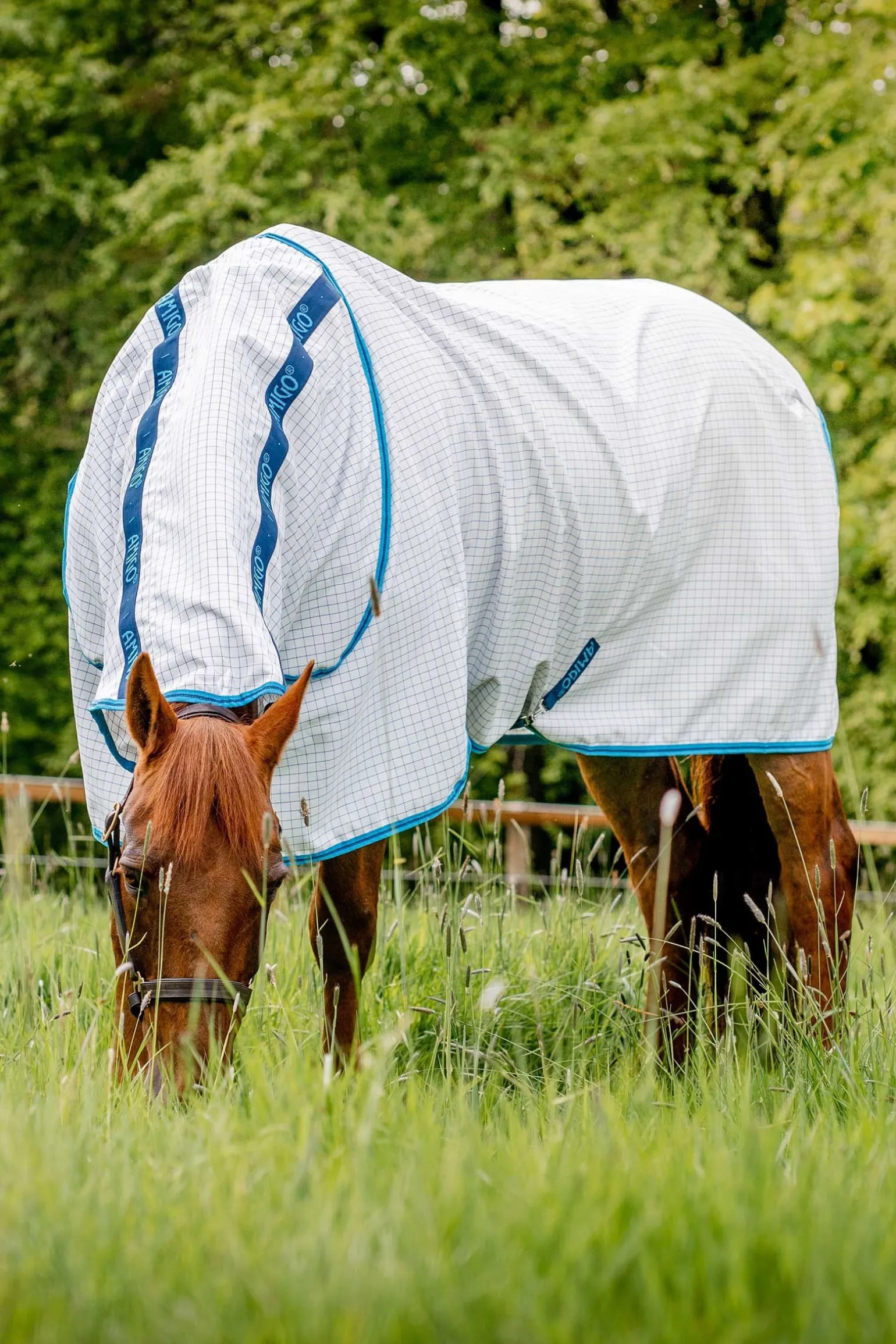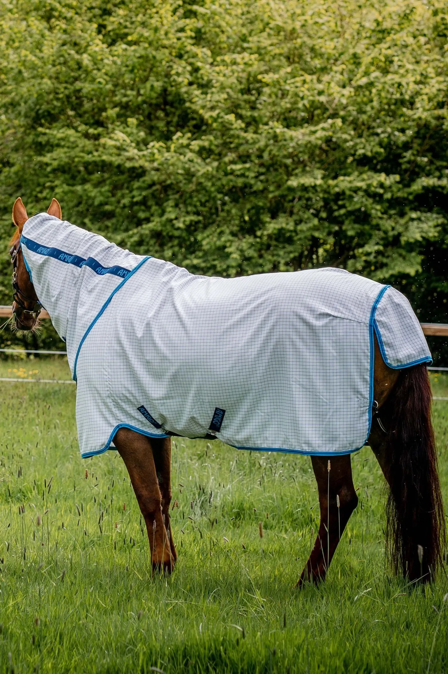Die Amigo Fliegendecke Plus schützt das Fell deines Pferdes vor UV-Schäden und hält Fliegen fern. Das leichte Ripstop-Polyester-Außenmaterial ist wasserabweisend, der Disc-Front-Verschluss und das Surefit-Halsdesign bieten deinem Pferd die perfekte Passform und ein leichtes Tragegefühl. Vordere Beinausschnitte, Kreuzgurte, eine abnehmbares Halsteil und eine leicht zu reinigende Schweifkordel sorgen für Komfort für dein Pferd.