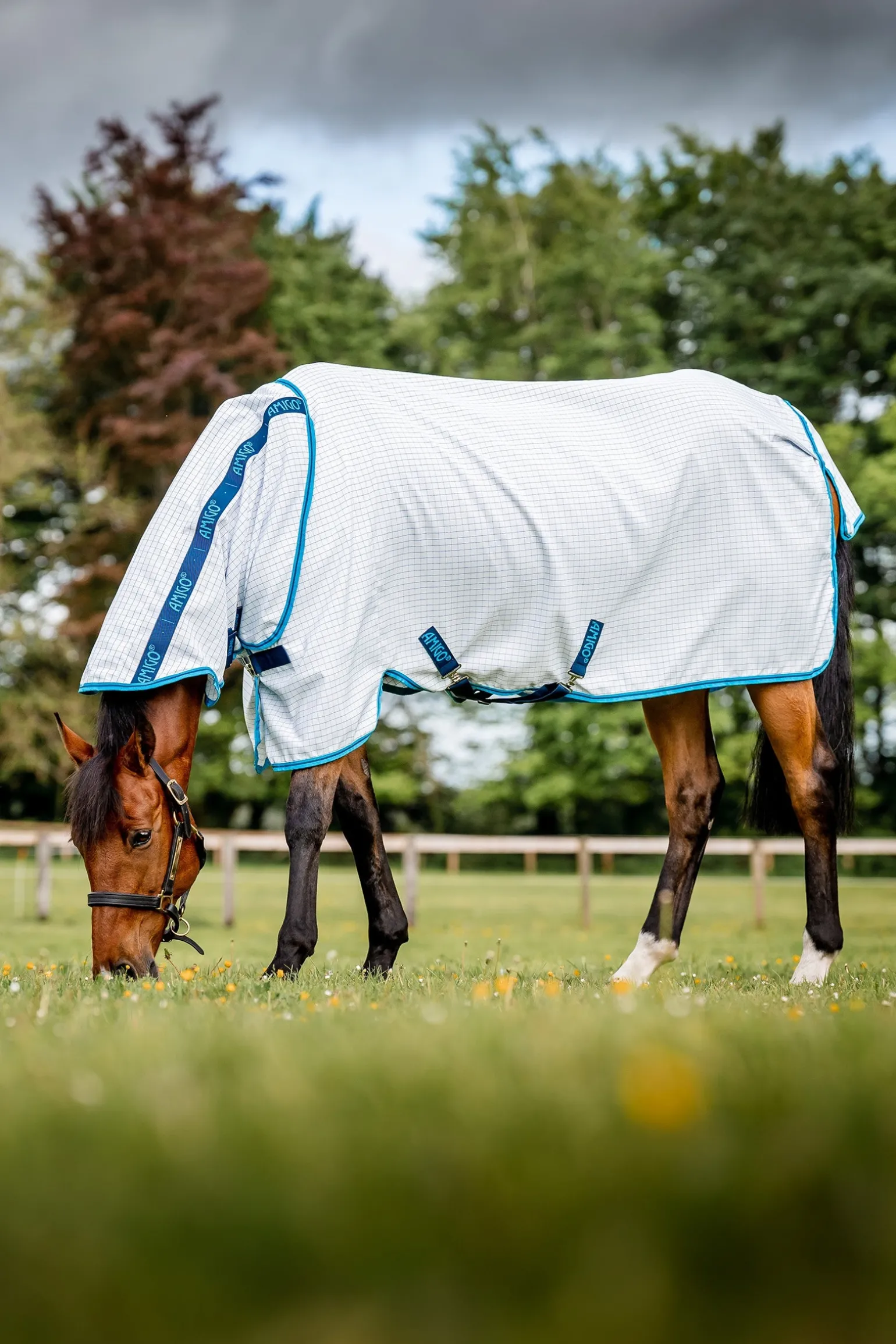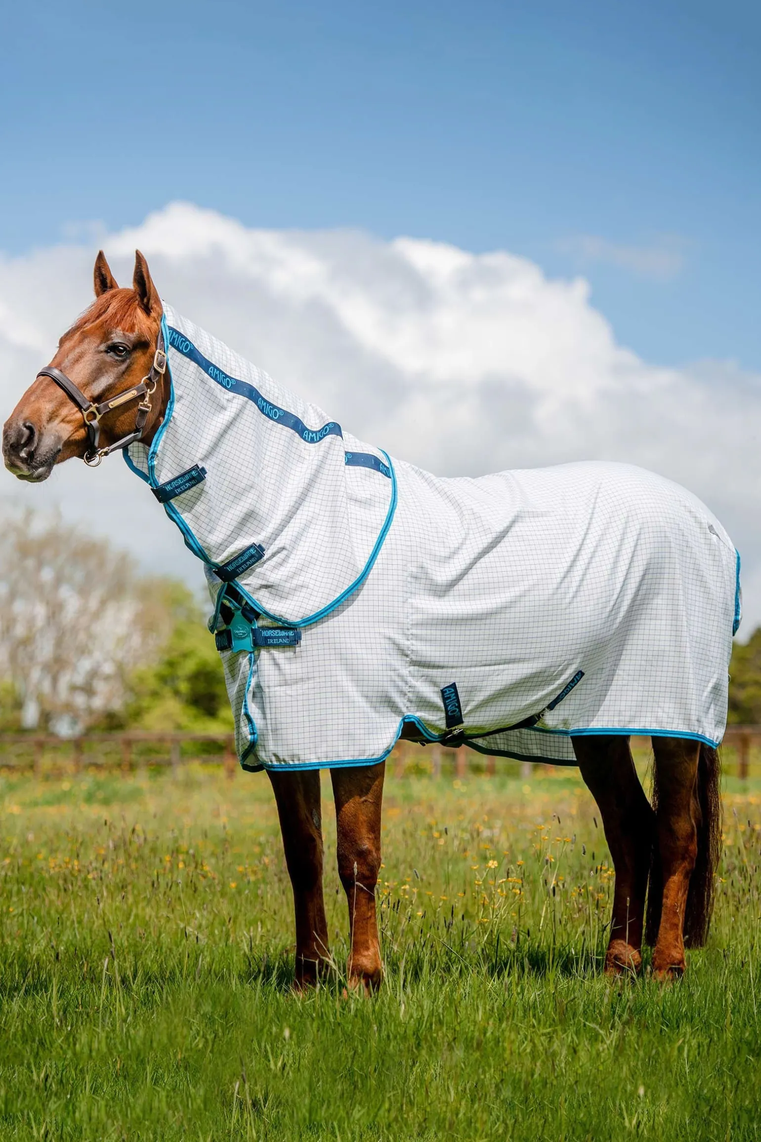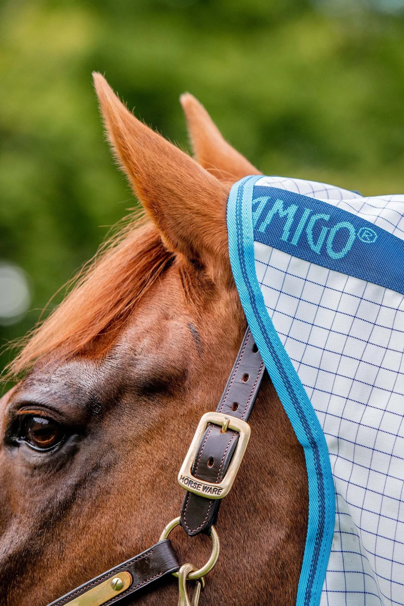 Die Amigo Fliegendecke Plus schützt das Fell deines Pferdes vor UV-Schäden und hält Fliegen fern. Das leichte Ripstop-Polyester-Außenmaterial ist wasserabweisend, der Disc-Front-Verschluss und das Surefit-Halsdesign bieten deinem Pferd die perfekte Passform und ein leichtes Tragegefühl. Vordere Beinausschnitte, Kreuzgurte, eine abnehmbares Halsteil und eine leicht zu reinigende Schweifkordel sorgen für Komfort für dein Pferd.