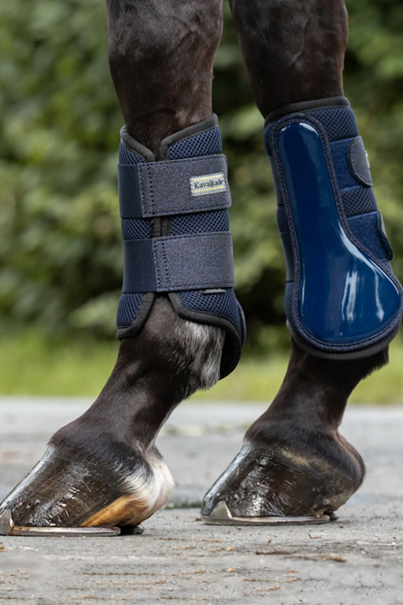 The softly padded and robust synthetic leather boots “Anatomic Star with Mesh” from Kavalkade prevent leg injuries and offer protection to tendons and cannon bone. The anatomical shape offers better freedom of movement. The mesh material ensures better breathability and reduces possible heat build-up during heavy loads. The inside is made of a soft and light material for optimal adaptation to the horse’s leg. The chic lacquer on the inside, the glitter on the hook and loop fasteners and the subtle glitter piping give the boots an elegant look. The outside of the boots are made of synthetic leather, making it 100 % vegan and very easy to care for. This boots are suitable for both front and hind. We recommend taking one size larger for hind.
