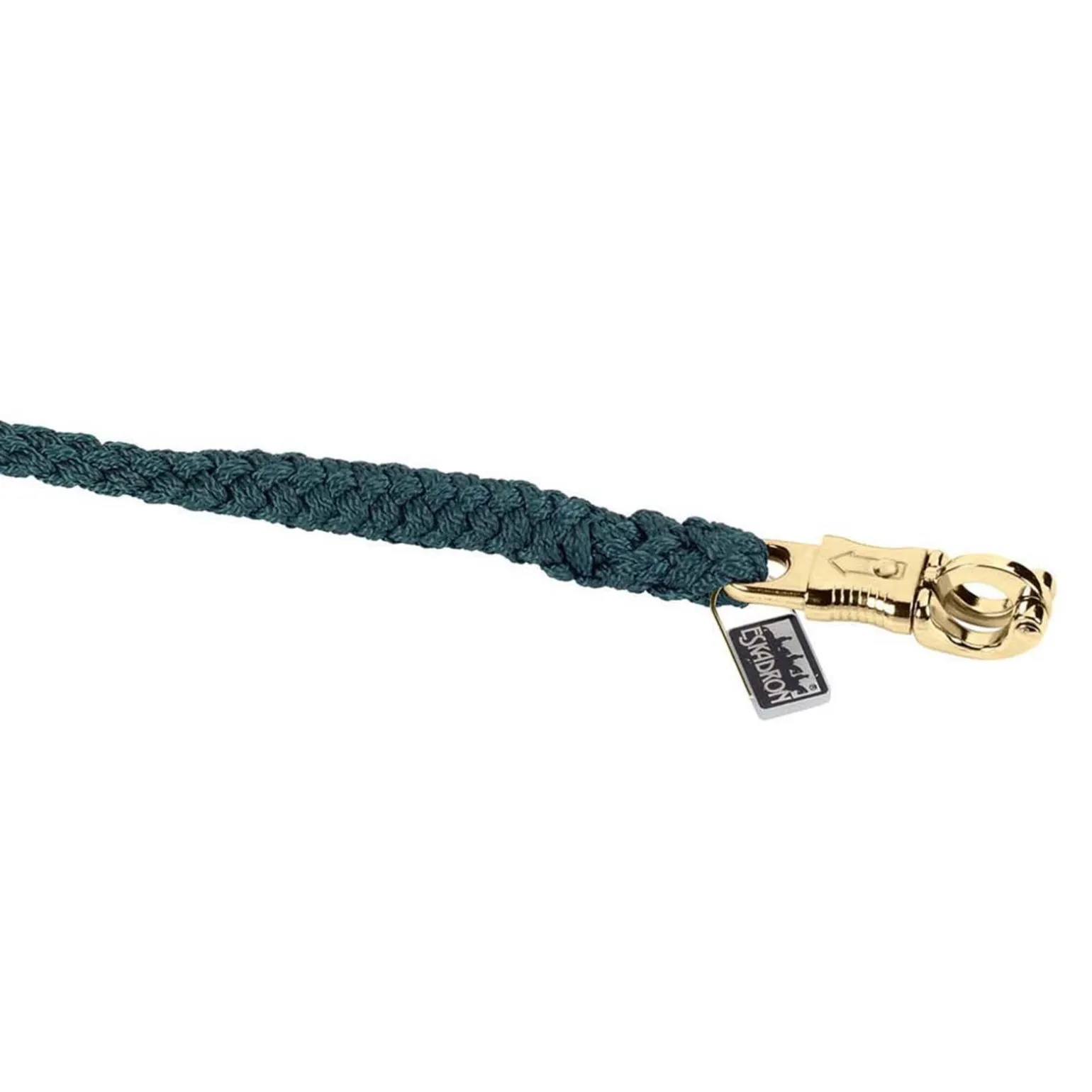 Hochwertiger Anbindestrick mit vermessingtem Panikhaken aus geflochtenem, reißfestem Polypropylengarn, 2 m lang. Als besonderes Accessoire mit Namensschild zur individuellen Kennzeichnung ausgestattet.