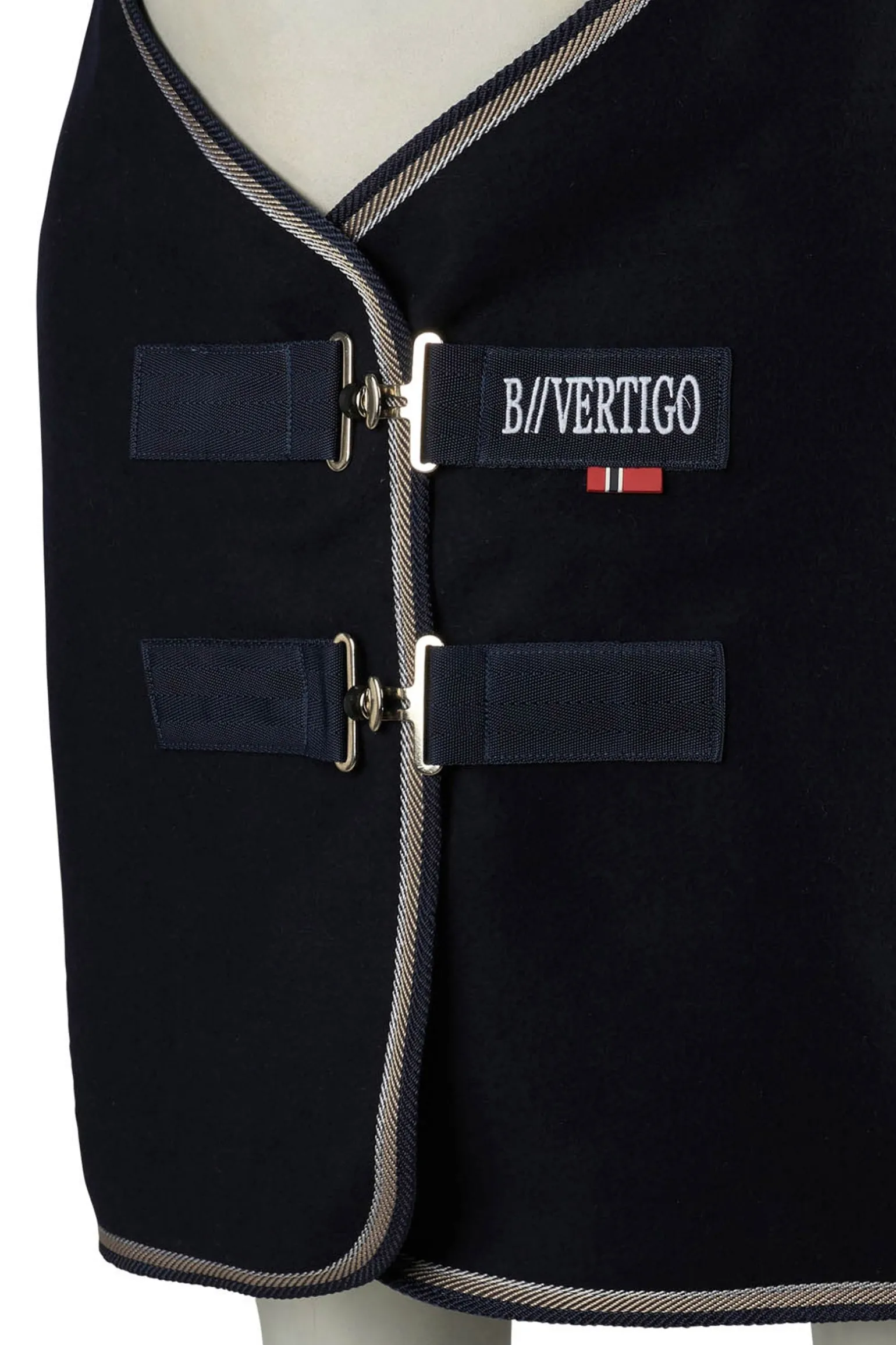 Funktion trifft auf Design in dieser großartigen Decke von B Vertigo – atmungsaktive Wolle sorgt dafür, dass dein Pferd gewärmt wird ohne zu überhitzen, während das zusätzliche Futter an den Schultern Scheuerstellen verhindert. Diese vielseitige Decke kann im Winter für viele Zwecke verwendet werden, zum Beispiel als Unterlage für Regendecken oder als Stalldecke. Doppelte Frontschnallen, Kreuzschnallen und ein Gummischlauchband am Schweif halten diese Decke an ihrem Platz. Die strapazierfähige Konstruktion sieht edel aus, ist aber dennoch robust und lässt sich gut waschen, um Saison für Saison zu halten.