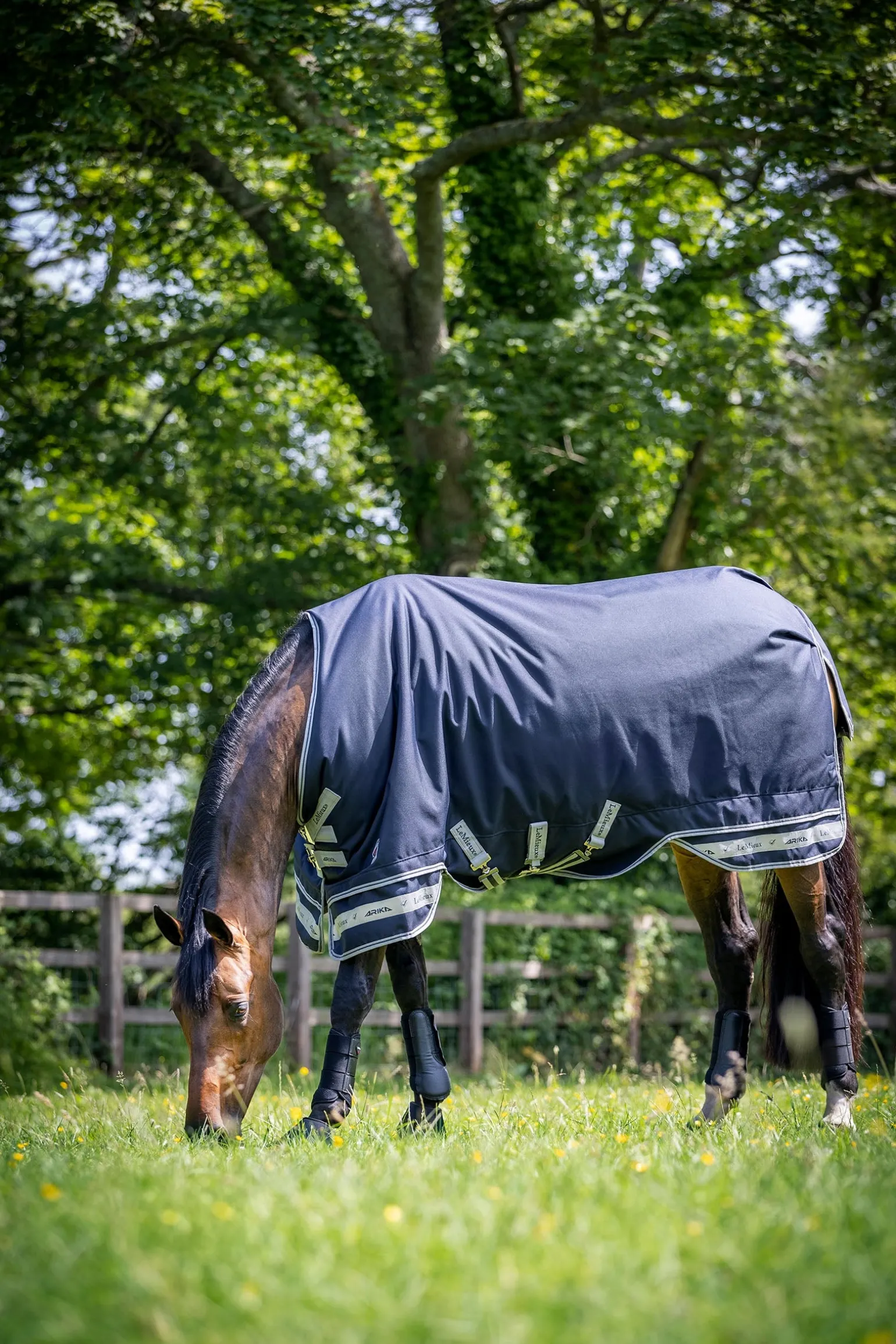 Diese technische, selbstaufrichtende Outdoordecke ist federleicht und für Übergangswetter konzipiert, um dein Pferd auf der Weide sauber und geschützt zu halten. Das speziell gefertigte 900 Denier atmungsaktive und wasserdichte Außenmaterial ist über die gesamte Breite der Decke geschnitten, wodurch Undichtigkeiten ohne Rückennaht vermieden werden. Zusammen mit dem antibakteriellen, antistatischen und glanzverstärkenden Innenfutter bleibt die Decke perfekt auf dem Pferd ausbalanciert. Sicherheit bietet der designgeschützte Frontverschluss. Der obere der beiden robusten T-Riegel ist in einem Winkel von 45° angebracht, um den Druck auf die Schulterspitze zu verringern und Bewegungsfreiheit zu gewährleisten. Mit dem anti-fusselnden Klettverschlusssystem kannst du sicher sein, dass die Decke nicht verrutscht. Traditionelle Decken, die den Pferdekörper umschließen, erzeugen Spannung im Schulter- und Hinterbeinbereich, was die Bewegungsfreiheit einschränken und Scheuerstellen verursachen kann. Unser weltweit patentierter zweiteiliger Rock löst diese Spannung, ermöglicht Bewegungsfreiheit und hält gleichzeitig die Wärme, während der Pferdekörper vor Spritzern geschützt wird. Gekreuzte Bauchgurte mit abnehmbarem Mittelriemen sichern die Decke fest. Reflektierende Sicherheitsstreifen sorgen für Sichtbarkeit bei schlechten Lichtverhältnissen. Ein silikonbeschichteter Schweifriemen hält alles sauber und ordentlich, während eine extra lange Schweifabdeckung den oberen Teil des Schweifs schützt. Diese Decke wird mit abnehmbarem Halsteil geliefert und ist mit allen LeMieux-Deckenunterlagen, Brustschutz und Halsteilen kompatibel, um maximale Flexibilität über die Jahreszeiten hinweg zu gewährleisten.