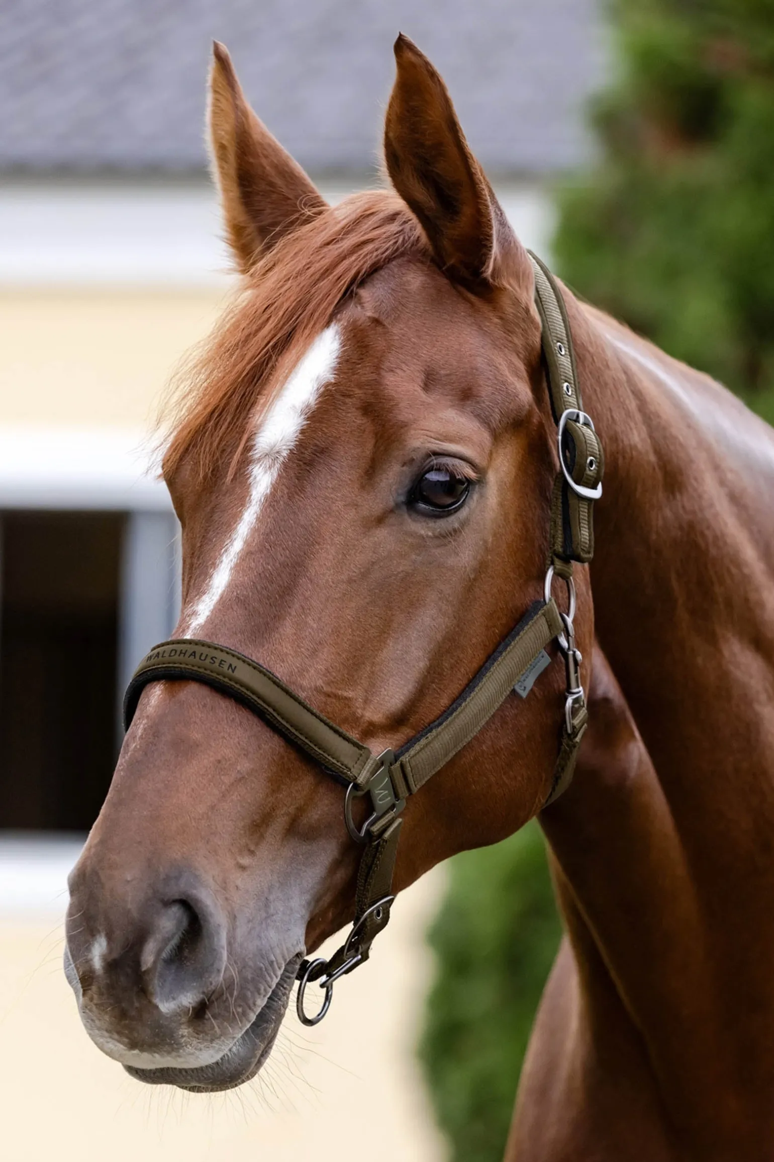 Hochwertiges Halfter mit weicher Polsterung im Nacken- und Nasenbereich, sowie an den Backenstücken. Anatomisches Genickstück für angenehmen Tragekomfort. Mehrfache Verstellbarkeit an Kinnriemen und Genickstück. Mit silber/grauen Metallbeschlägen.