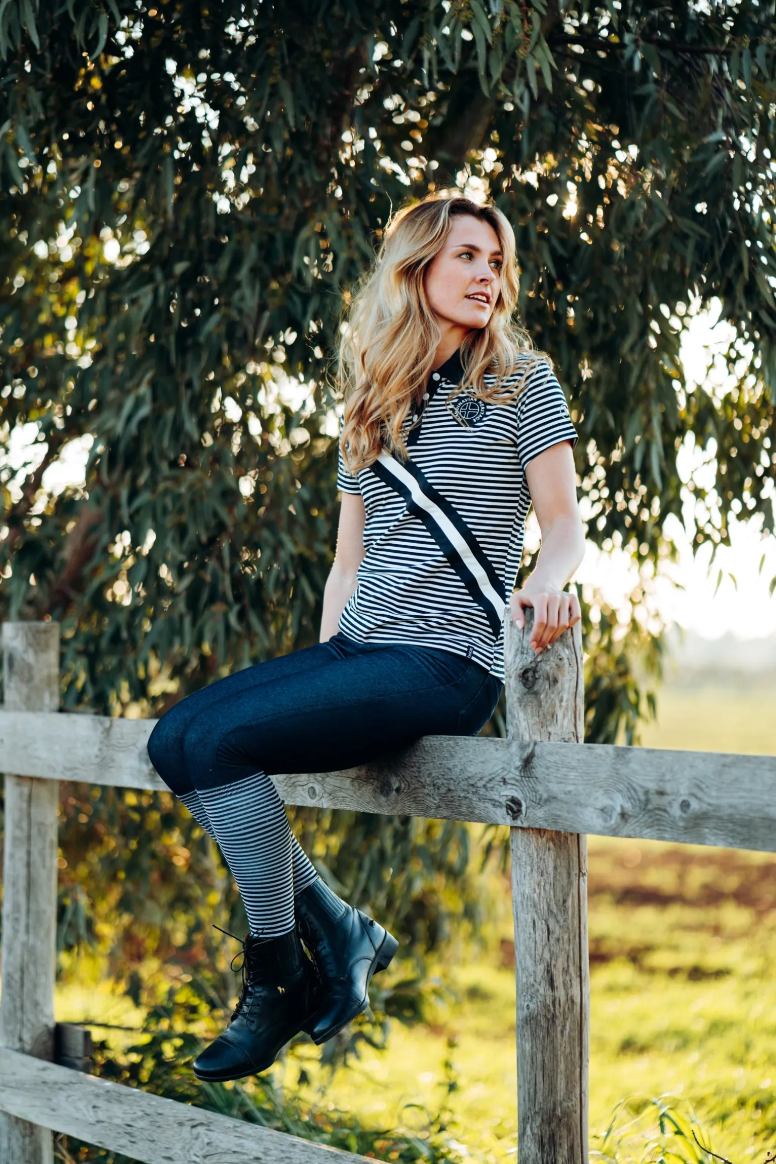 Diese hübsch bedruckten Horze Kniestrümpfe sind aus weichem, elastischem Stoff gefertigt, der perfekt unter deine Lieblingsstiefel passt. Das dünne Material sorgt für Komfort, und der geformte Fußbereich gibt zusätzlichen Halt. Leuchtende Farben und Muster bringen Spaß in deine Reitgarderobe.