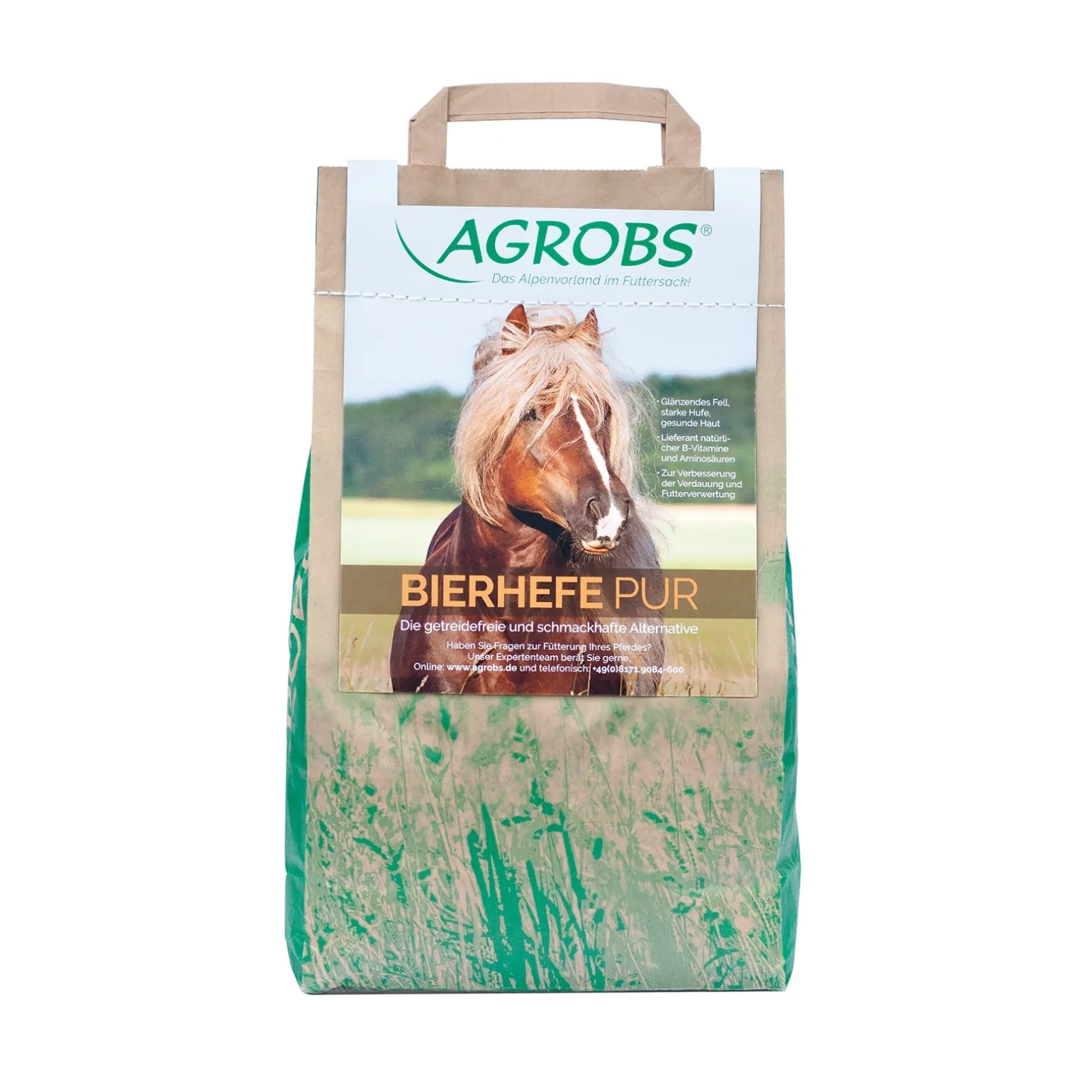 Durch den Einsatz reiner Bierhefe, nicht an Treber gebunden, ist AGROBS Bierhefe Pur auch für Pferde mit empfindlichem Stoffwechsel im Rahmen einer getreidefreien Fütterung geeignet. Durch den hohen Gehalt natürlich vorkommender B-Vitamine und Aminosäuren ist Bierhefe Pur ein sehr vielseitig einsetzbares und zu jeder Fütterung passendes Ergänzungsfuttermittel und wertet die Fütterung jeden Pferdes in jedem Alter auf.