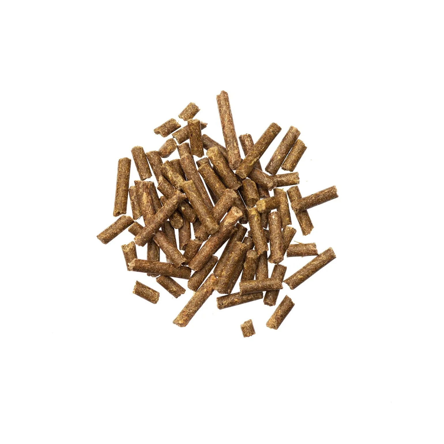 Ergänzungsfuttermittel für Pferde, Zusammensetzung: Trockengrünfasern*, Bierhefe (inaktiv), Leinextraktionsschrot, Rapsöl. Rohprotein 27.30%, praec verd. Rohprotein 20.76%, Rohöle und-fette 7.10%, Rohfaser 9.10%, Rohasche 8.30%, Natrium 0.37%, Stärke 2.60%, Zucker 4.60%, Vitamin B1 15.30mg/kg, Vitamin B2 15.20mg/kg, Vitamin B6 11.10mg/kg, Lysin 1.34%, Methionin 0.53%, Cystin 0.30%, Threonin 1.13%, verdauliche Energie 13.07 DE MJ/kg, umsetzbare Energie 10.30 ME MJ/kg.
