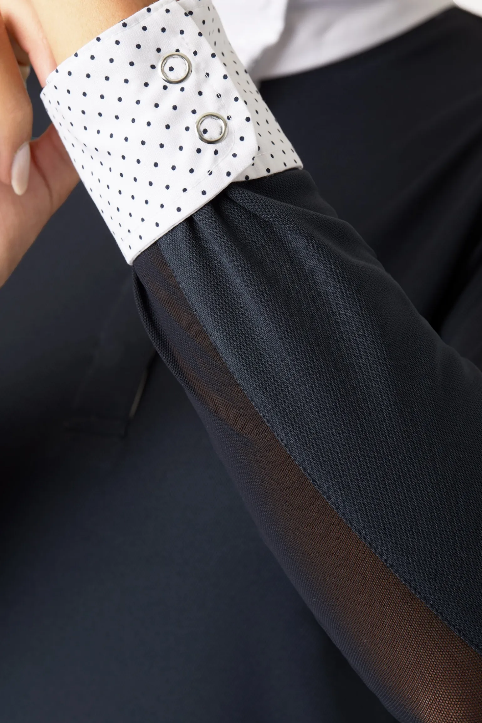 Ob Sie trainieren oder am Wettbewerb teilnehmen, das elegante Turniershirt wird beeindruckend aussehen. Der Kragen kann für formelle Ereignisse geschlossen werden oder er wird im Freizeitbereich offen getragen und das gestreifte Muster wird sichtbar. Seitliche Einsätze und die Arme sind für eine perfekte Passform und ein tolles Gefühl angepasst. Die speziellen Details beinhalten Kristall-Embleme an den Bündchen, ein Crescendo Logo auf der linken Brust und atemberaubende weiße Bündchen. Die Druckknöpfe aus Metall verschwinden wenn der Kragen geschlossen wird. Das Shirt hat Mesh Gewebe unter den Armen und das gesamte Shirt trocknet schnell und ist atmungsaktiv mit zusätzlichem UV Schutz.