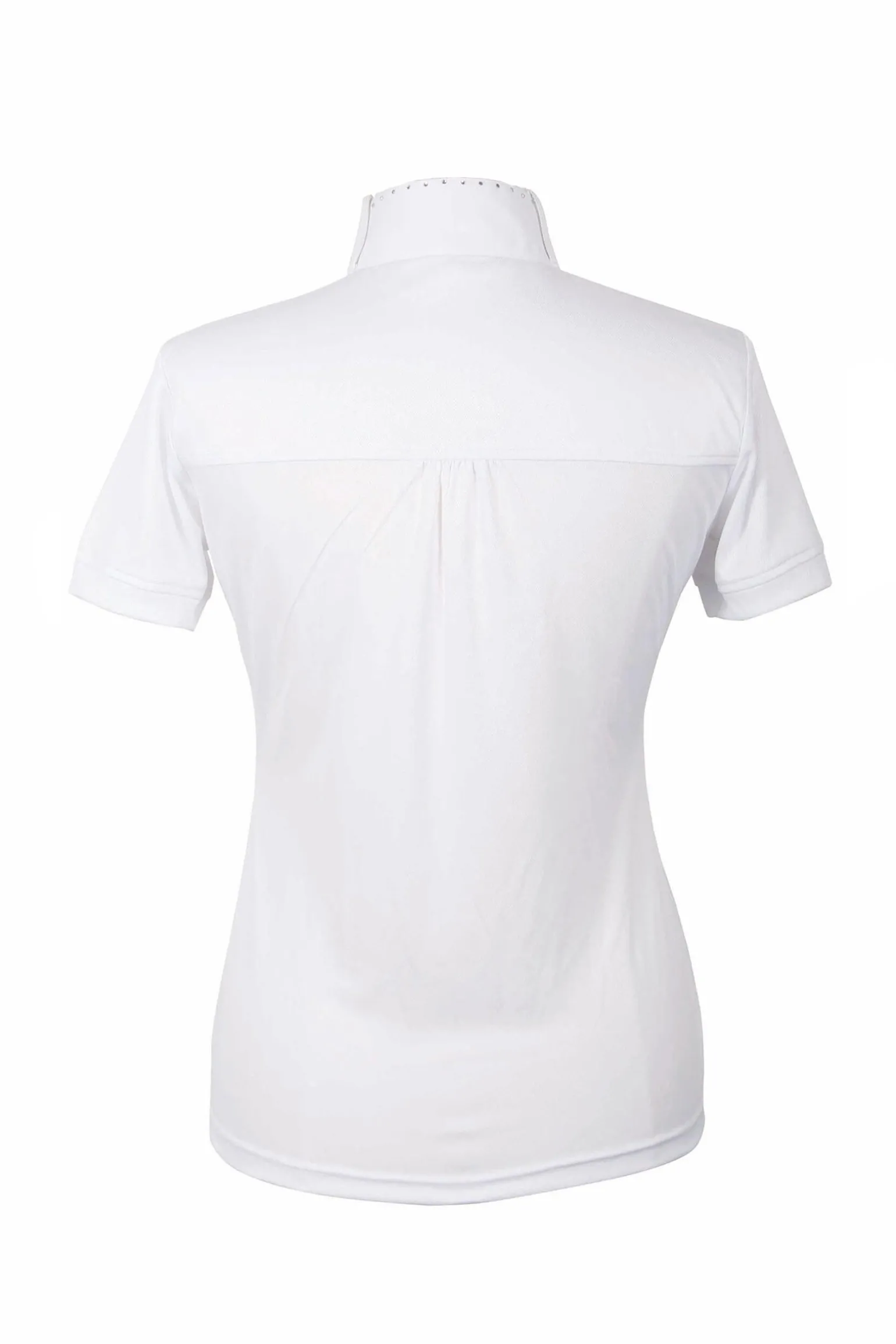 Luxuriöses Turniershirt mit Applikationi aus Strass-Kristallen, Reißverschluss und einem Stehkragen mit Schlaufen für die Krawatte.