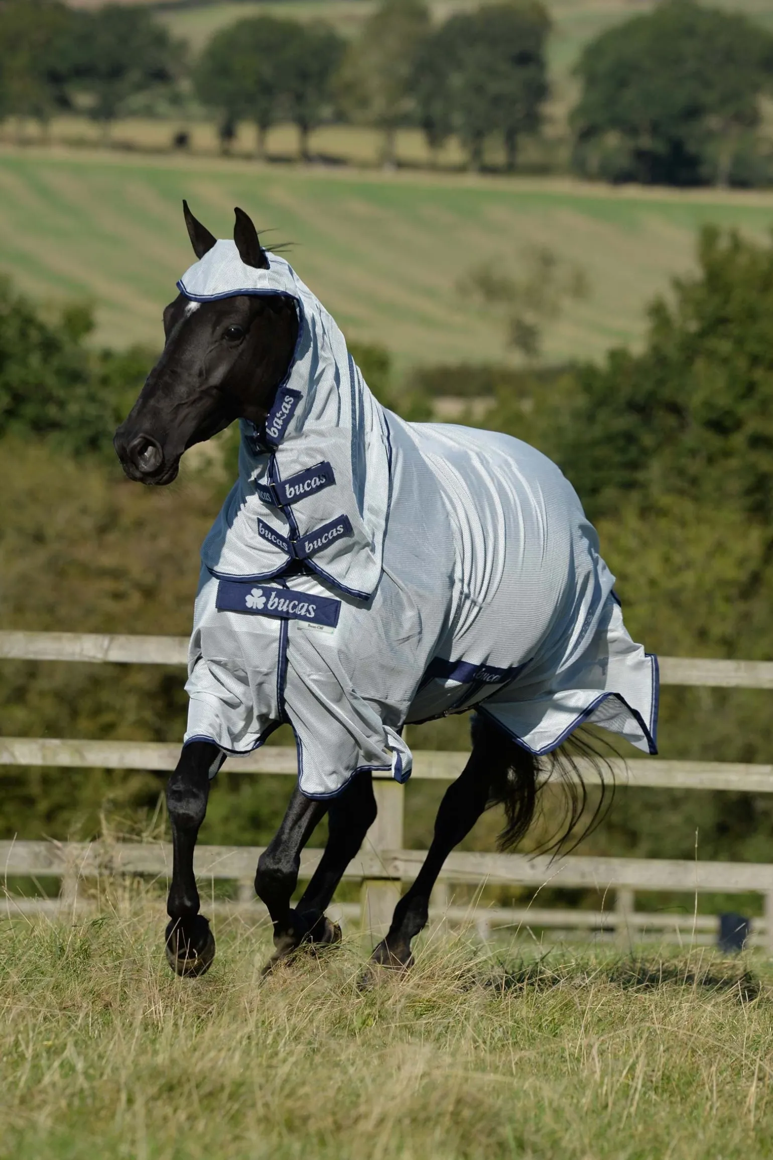 Die Buzz-Off ist eine speziell entwickelte Fliegendecke, die Ihr Pferd vor Fliegen schützt und die UV-Strahlung reduziert.