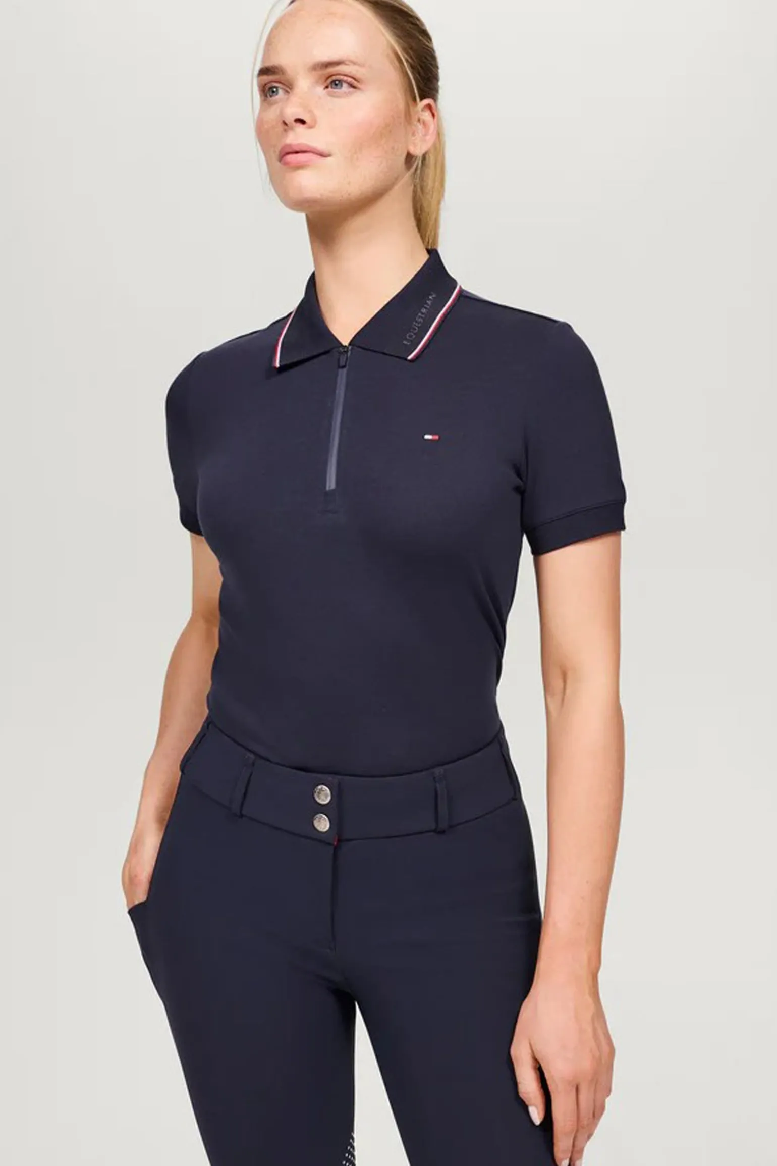 Entfalte deinen sportlichen Spirit mit dem Damen-Polo aus Baumwollpiqué – mit technischer Oberfläche und Stretch für unvergleichlichen Komfort. Ein praktischer Reißverschluss sorgt für einfaches An- und Ausziehen, und die Kombination aus klassischem Polo-Look und sportlich-technischem Material macht das schmal geschnittene Polo zum perfekten Mix aus Stil und Funktion. Zeig, was in dir steckt – im Sattel und darüber hinaus!