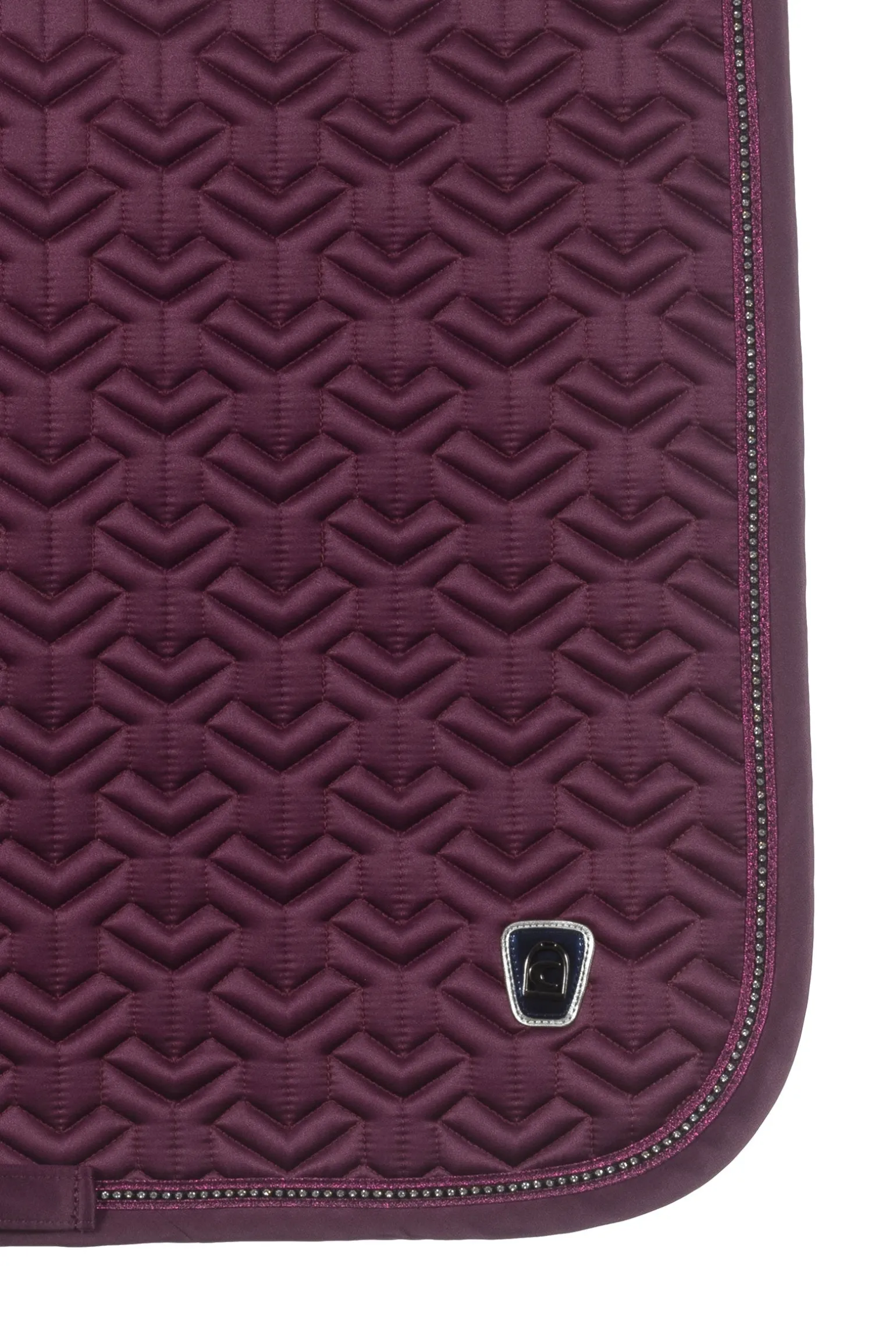 Schabracke mit aufwendigem Steppbild in grafischer Optik. Eleganter Look durch das glänzende Obermaterial. Zwischen den beiden Tapes an der Einfassung befindet sich ein Kristallband. Diese Verzierung rahmt die Schabracke perfekt ein und ist ein echter Blickfang. An den hinteren Ecken befindet sich jeweils ein hochwertiges Cavallo Logo Patch in Gunmetal Optik. Das schnell trocknende und Feuchtigkeit transportierende Cool Comfort Mesh-Futter ist besonders hautfreundlich, kühlend, langlebig und bietet höchsten Komfort. Eine formbeständige Wattierung ermöglicht der Schabracke eine perfekte Lage auf dem Pferderücken. Die oberen und unteren Gurtstrupfen sind mit Satinband eingefasst. Die oberen Gurtstrupfen sind abnehmbar, die unteren Gurtstrupfen sind mit einem Klettverschluss zu fixieren.