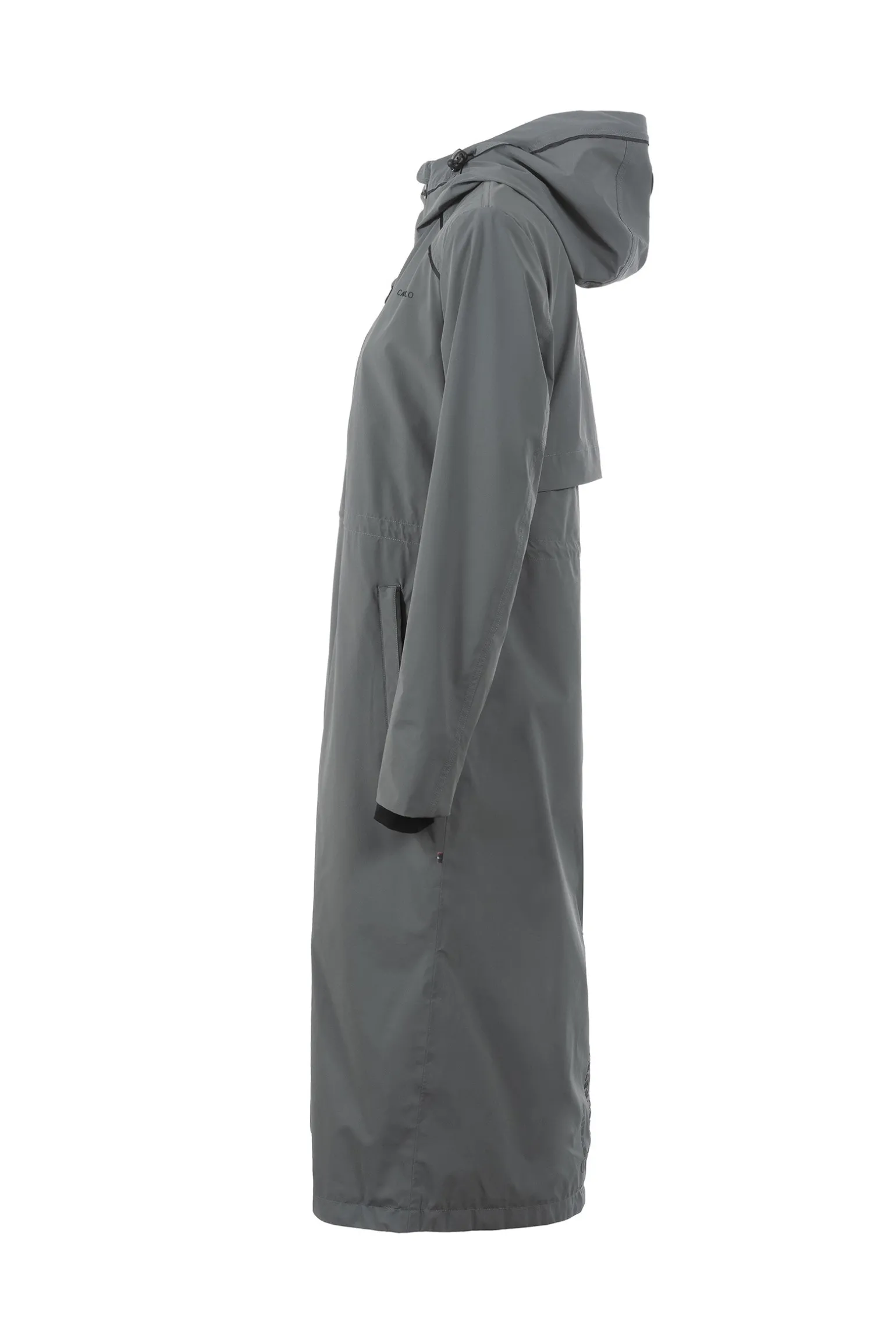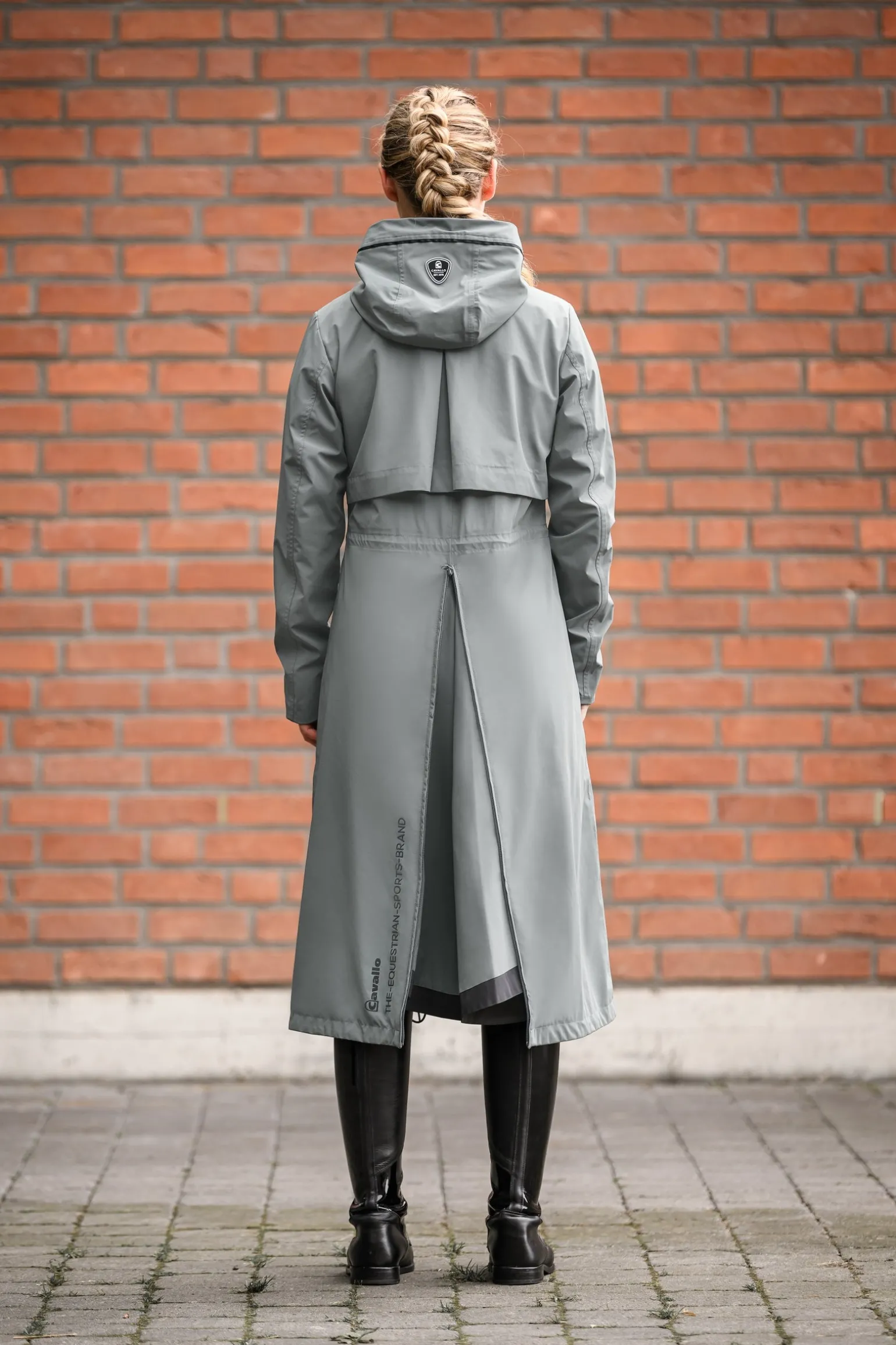 Der Cavallo Cavalnafisa Funktions-Regenmantel ist eine stilvolle und praktische Wahl für nasse Wetterbedingungen. Dieser lange Funktions-Regenmantel verfügt über eine angesetzte Kapuze mit hohem Kragen und einen individuell verstellbaren Kordelzug sowohl in der Kapuze als auch in der Taille für eine optimale Passform. Die Kapuze kann hinten mit einem Cavallo-Druckknopf fixiert werden, während ein hochwertiger Cavallo-Logo-Patch die Rückseite der Kapuze ziert. Für Leistung und Komfort entwickelt, bietet der Mantel einen schwarzen, wasserdichten 2-Wege-Frontreißverschluss, Schlitz-Taschen mit Reißverschluss und eine schmale, schwarze Rippblende für einen eleganten Look. Eine Frontpasse mit passendem Piping verleiht zusätzliche Raffinesse, während der schwarze 3D-Cavallo-Print auf der linken Brust und im Rückenschlitz das charakteristische Design betont. Im Inneren sorgt eine praktische Handytasche für zusätzlichen Komfort, während die Rückenpasse mit großer Kellerfalte und Mesh-Futter eine optimale Luftzirkulation und Bewegungsfreiheit gewährleistet. Der aufwendige Cavallo-Print in Off-White in der Mesh-Fütterung verleiht dem Design eine stilvolle Note. Ein Reißverschluss in der Rückenmitte vom Saum bis zu den Hüften ermöglicht bequemes Tragen beim Reiten, während der Rückenschlitz mit Einsatz und schwarzem Reflexstreifen das Sattelzeug vor Kratzern schützt. Ein schwarzer, reflektierender Cavallo-Print auf der rechten Tasche und eine wasserdichte Brusttasche mit Reißverschluss auf der linken Seite runden diesen hochfunktionalen und eleganten Regenmantel ab.