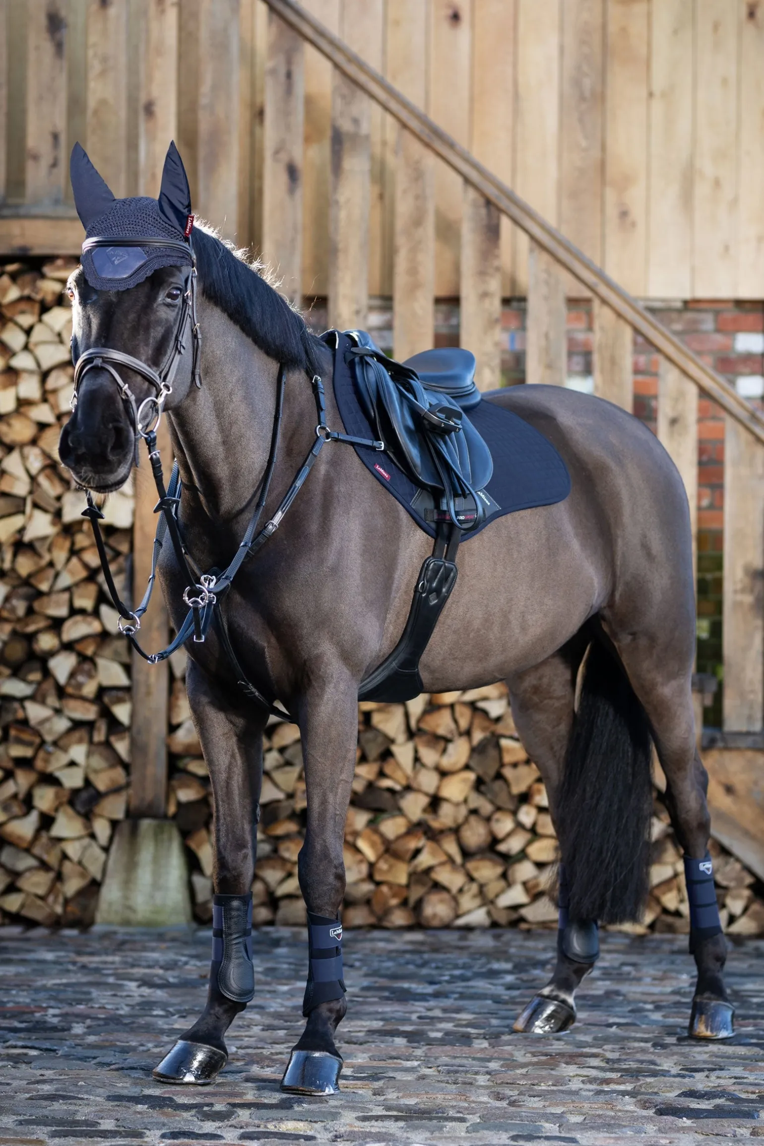 Ergonomisch geformte Vielseitigkeitsschabracke, ideal zum Springen oder Ausritte. Modisches und strapazierfähiges Pad für maximale Leistung des Materials, für das tägliche Training oder Turniereinsätze geeignet. Premium Baumwolle außen und Fütterung für Temperaturregelung und Atmungsaktivität. Klassischer Vielseitigkeits-Schnitt mit hohem Widerrist & Gurt-Schutz mit innen versteckten Schlaufen um ein Rutschen zu verhindern.