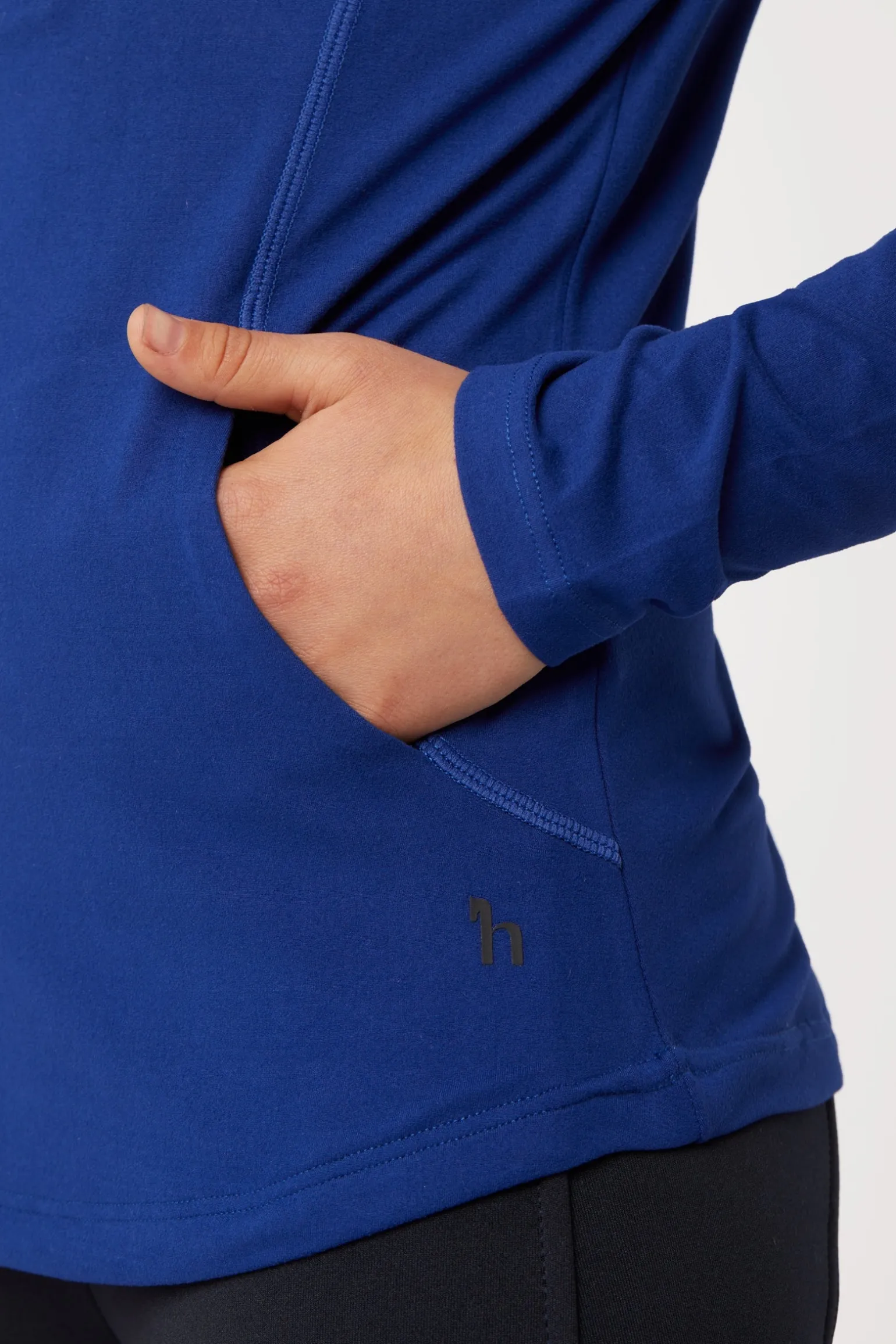 Erhältlich in herrlichen, frischen Farben sieht dieses Trainingsshirt toll aus und ist extrem weich und angenehm zu tragen. Es ist die ideale erste Schicht unter einer wärmeren Jacke. Lange Ärmel sind im Winter ein Muss, und ein Stehkragen hält die winterliche Kälte vom Hals fern. Die coole Kängurutasche vorne ist der beste Platz, um kleine Hände warm zu halten.