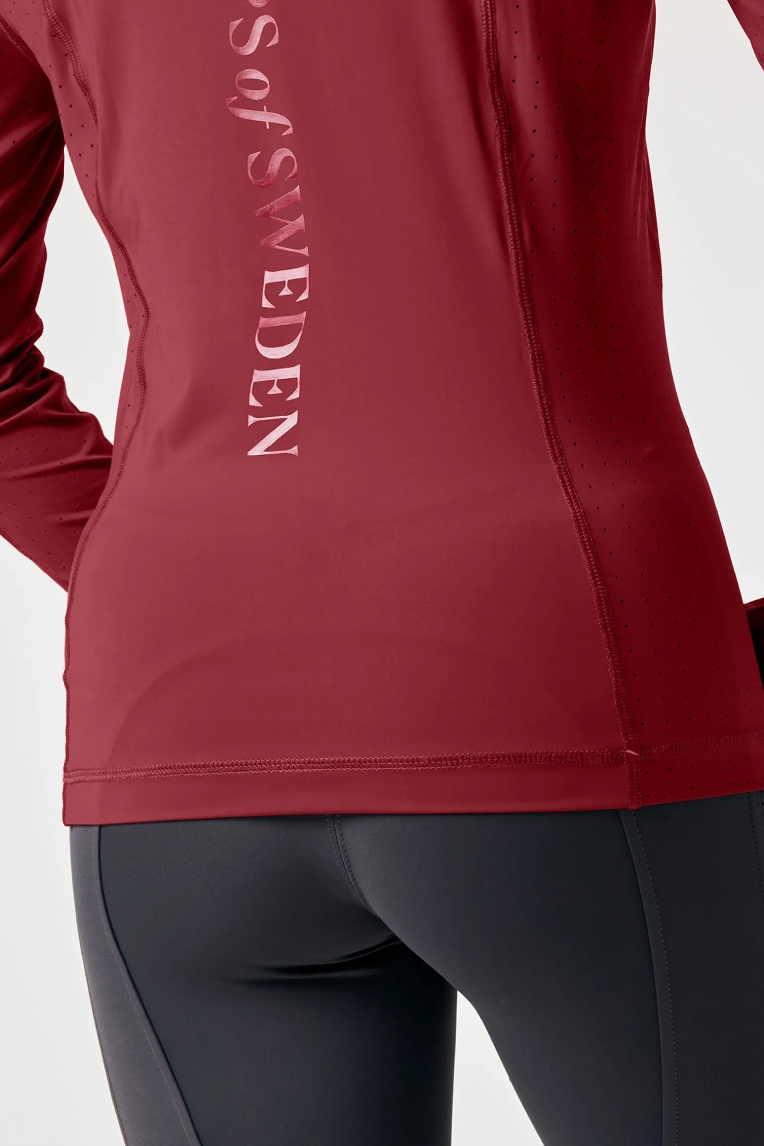 Leichtes Langarmshirt mit atmungsaktiven, lasergefertigten Einsätzen und Mandarinkragen mit Reißverschluss am Rücken.