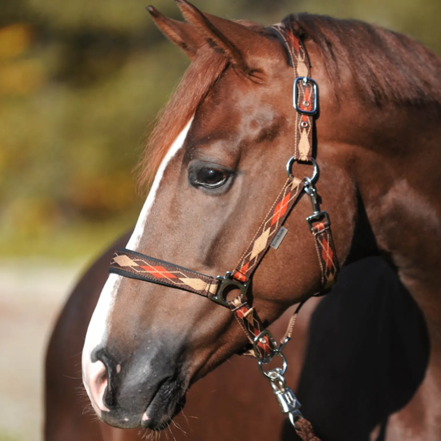 Das Halfter „Classic Raute“ mit seinen modernen Farben im Karomuster ist ein toller Blickfang auf jedem Pferdekopf. Das Genick und die Nase sind weich gepolstert. Für einen perfekten Sitz kann das Halfter beidseitig sowie unten verstellt werden. Die Beschläge sind in silber.