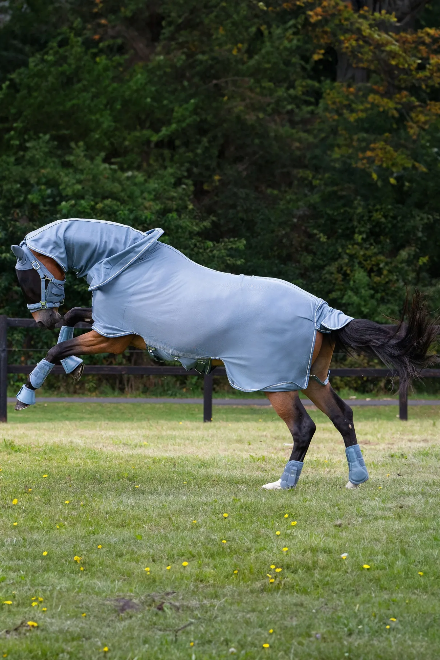 Die Eskadron Classic Sports SS25 Fly Detach-Neck Fliegendecke bietet optimalen Schutz vor Insekten und gleichzeitig maximalen Komfort für dein Pferd. Hergestellt aus leichtem, engmaschigem Polyester, ist sie atmungsaktiv und besonders strapazierfähig. Das glatte, atmungsaktive Nylonmaterial an Mähne, Brust und Schweif verhindert Scheuerstellen und Irritationen. Der abnehmbare Halsteil mit doppelten Schnallen ermöglicht eine flexible Anpassung, während der doppelte Brustverschluss mit Klettfixierung für Stabilität sorgt. Die dreifachen Bauchgurte und der integrierte Schweiflatz halten die Decke sicher an Ort und Stelle, und die zusätzliche Fixierung für das Halfter bietet extra Sicherheit. Das Kontraststreifen-Binding und die Eskadron Schriftzüge am Hals und Bauch runden das stilvolle Design ab. Ideal für warmes Wetter und als Fliegenschutz auf der Weide.