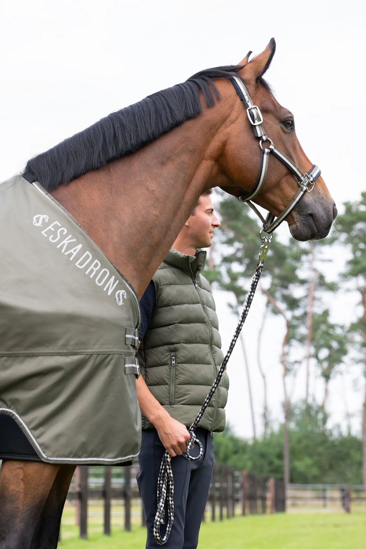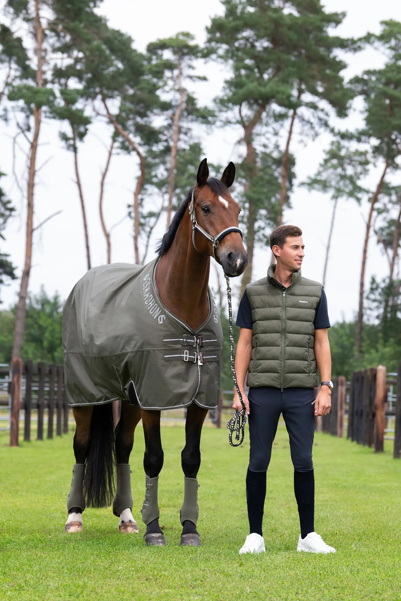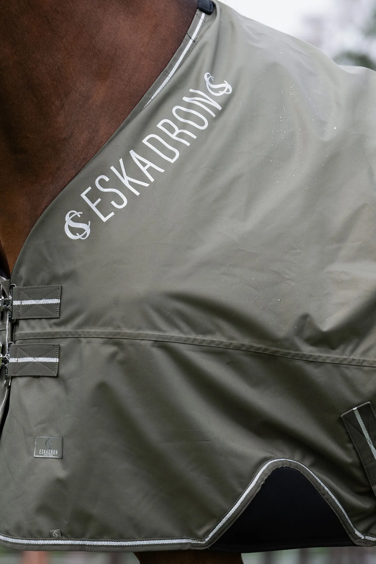 Die Eskadron Classic Sports SS25 Waterproof Light Turnout Rug wurde für optimalen Schutz und Komfort entwickelt. Die wasserdichte 600 Denier Oxford-Oberfläche mit hautfreundlichem Taftfutter sorgt für Langlebigkeit und Atmungsaktivität. Mit WP/3.000mm/H2O Wasserdichtigkeit und 3000g/m²/24h Atmungsaktivität bleibt dein Pferd trocken und bequem. Der verbesserte Schnitt mit elastischem Neopren-Ausschnitt an den Vorderbeinen bietet mehr Bewegungsfreiheit, während die Neoprenpolsterung im Mähnenbereich zusätzlichen Komfort bietet. Der T-Frontverschluss, Kreuzgurte und ein Schweifriemen sorgen für einen sicheren Sitz, während der große Schweifschutz zusätzlichen Schutz bietet. Das Eskadron-Logo ist beidseitig am Hals aufgedruckt.