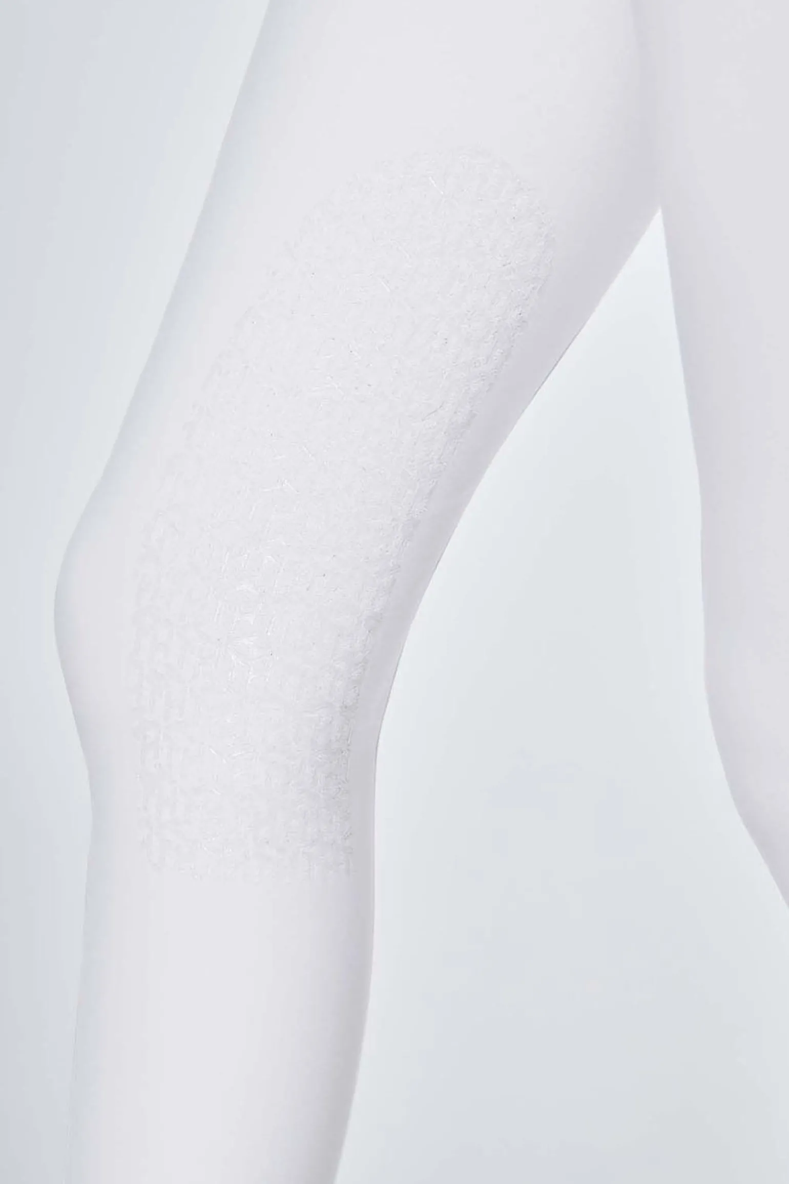 All-Season Kneegrip Reithose von Tommy Hilfiger mit zwei Jeans Taschen vorne und zwei Attrappen-Klappentaschen mit Knopf hinten. Die Reithose besitzt einen Beinabschluss aus elastischem Jersey für einen bequemen Einstieg und einen Bund Verschluss vorne mit Haken und zusätzlichem Safety-Button. Es gibt eine Logo Stickerei vorne seitlich unterhalb des Bundes, sowie eine TH Global Stripe Applikation auf einer Gurtschlaufe vorne und auf den zwei Mittleren hinten.