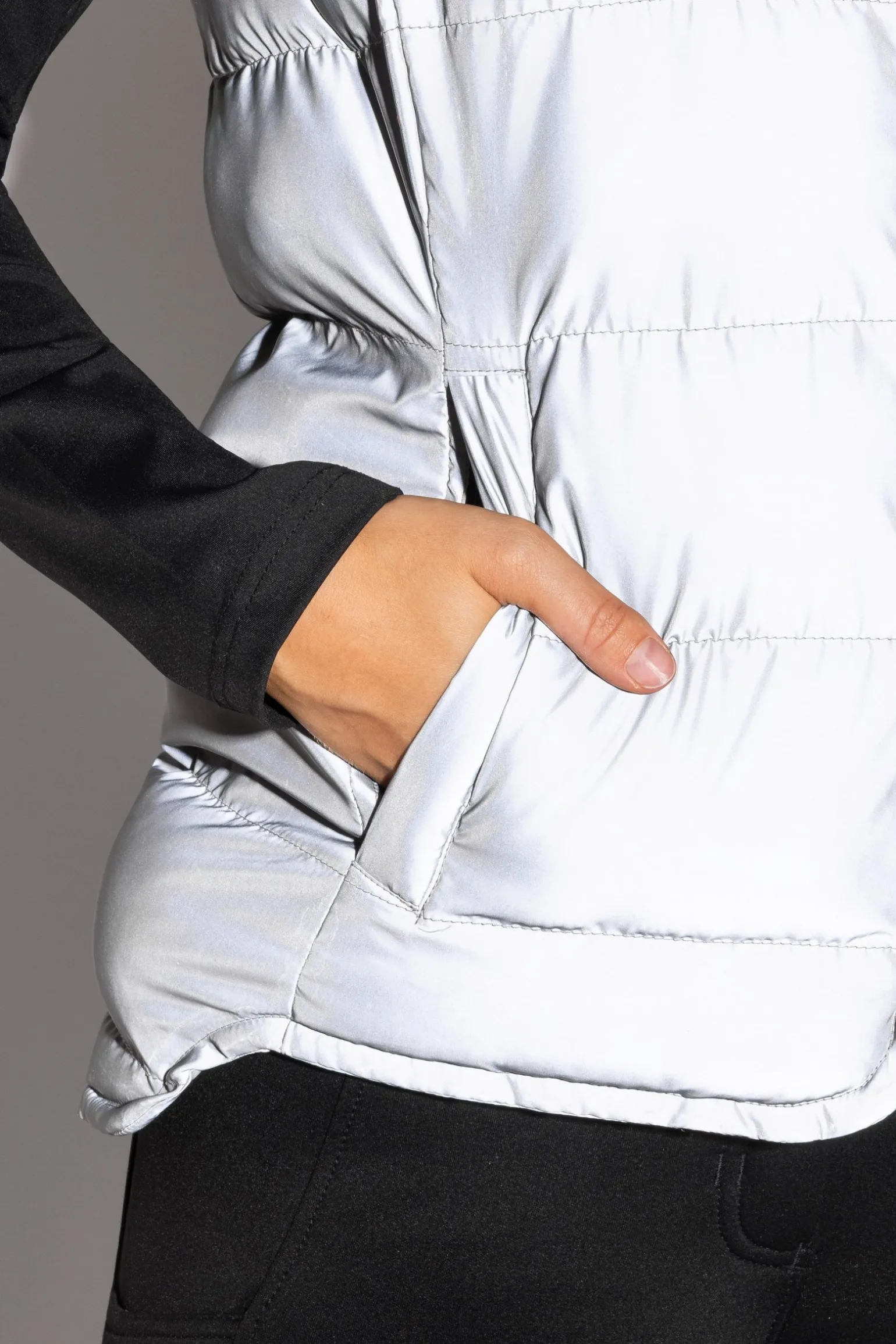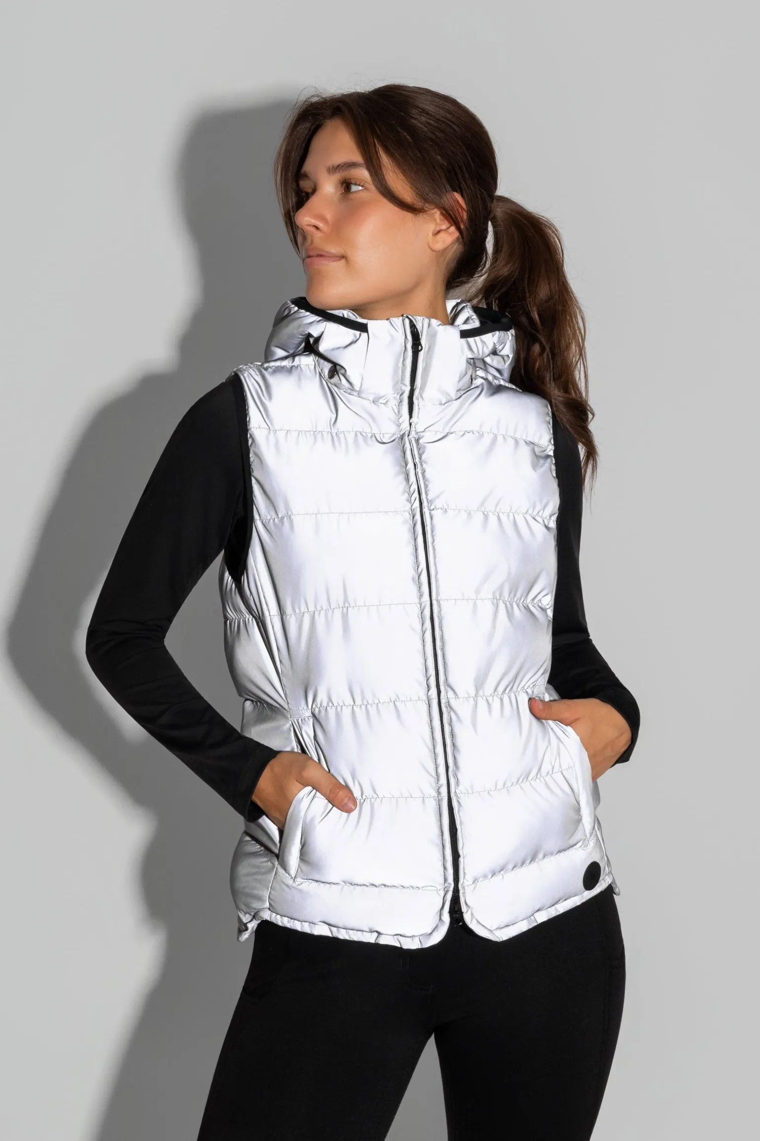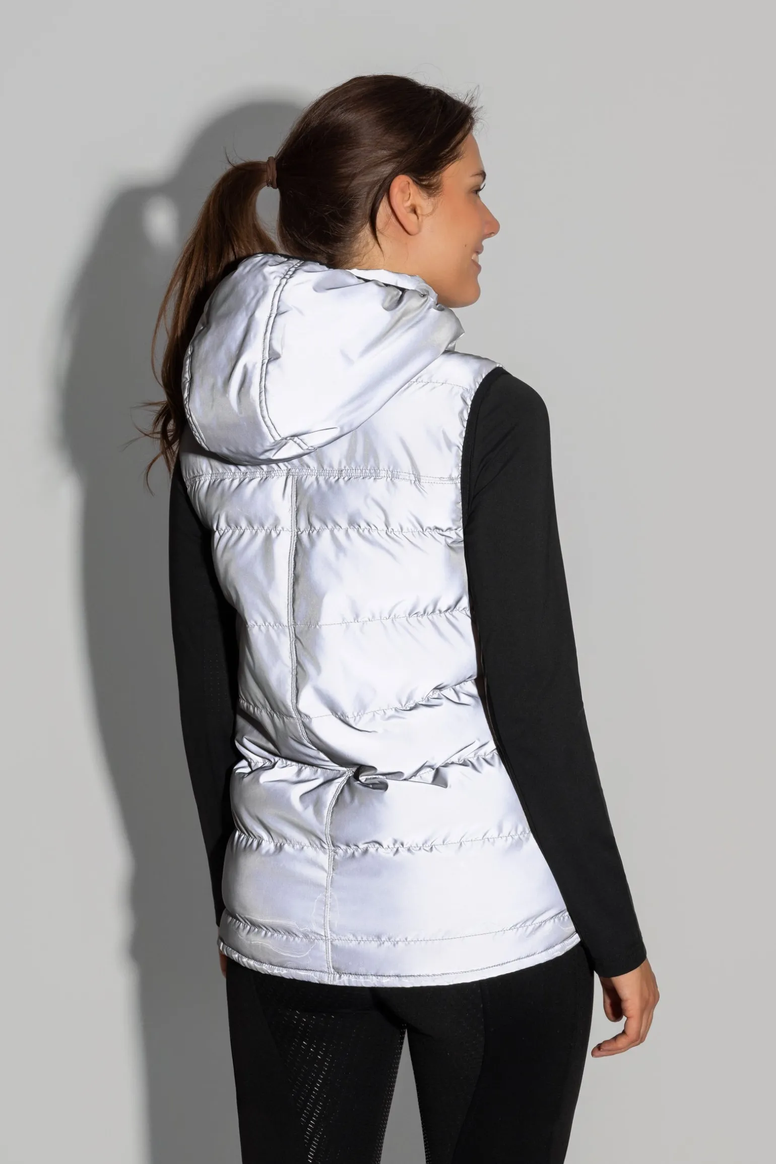 Diese gefütterte Weste ist super funktionell und bequem. Reflektierende Eigenschaften sorgen für Sichtbarkeit bei abendlichen Ausritten oder bei trübem Wetter. Das wasserabweisende, winddichte Material hält dich warm und trocken. Die Kapuze ist abnehmbar. Zwei Reißverschlusstaschen bieten Platz für Telefon, Schlüssel und Leckerli.