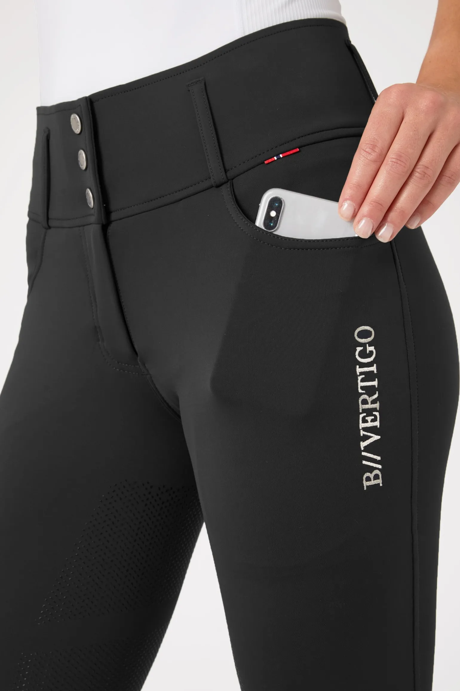 Unsere B Vertigo Meghan Reithose ist mit einem hohen Bund ausgestattet, der sie an ihrem Platz hält. Der Silikonvollbesatz hält dich sicher im Sattel. Elastische Beinabschlüsse passen perfekt unter deine Lieblingsstiefel. Die klassischen Farben lassen sich leicht mit deinen Reit-Oberteilen kombinieren. Zwei tiefe Fronttaschen bewahren dein Handy sicher auf. Auch als Version mit Kniebesatz erhältlich.