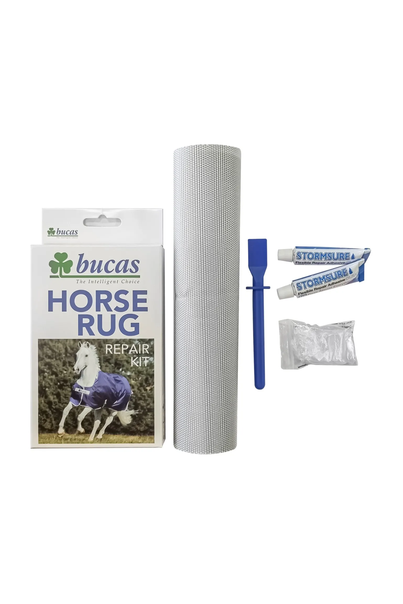 Das Bucas Pferdedecken-Reparaturset dient zur Reparatur unerwünschter Risse oder Löcher in deinen Bucas-Decken. Das Reparaturset enthält klare Anweisungen, wie du deine Decke mit den im Set enthaltenen Materialien reparieren kannst. Das Set umfasst ein Stück wasserdichtes Material, Handschuhe, zwei Tuben Spezialkleber und einen Spatel. Das Stoffstück wird auf die Innenseite der Decke gelegt, sodass keine farblich passenden Kombinationen zur Reparatur der Decke notwendig sind.