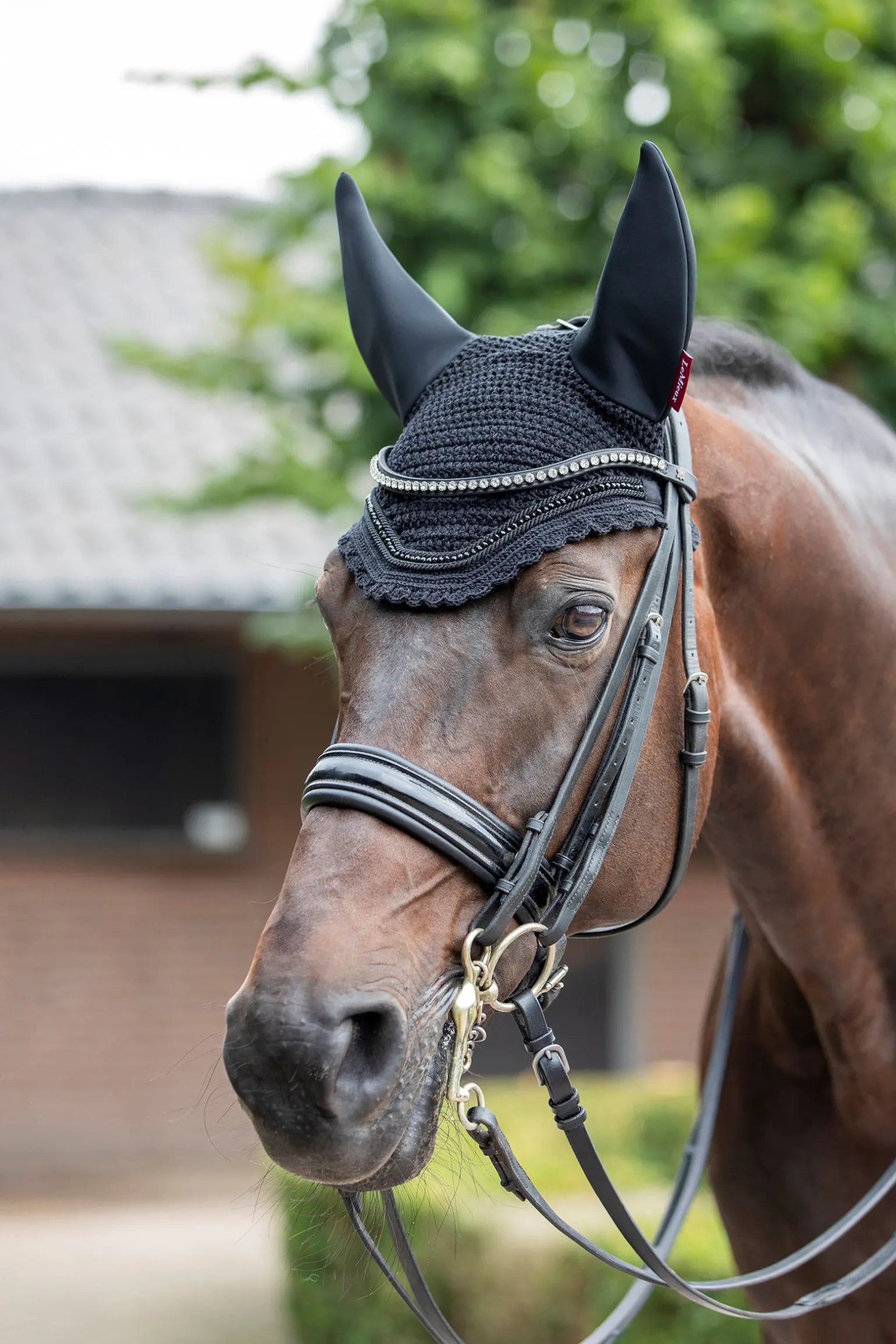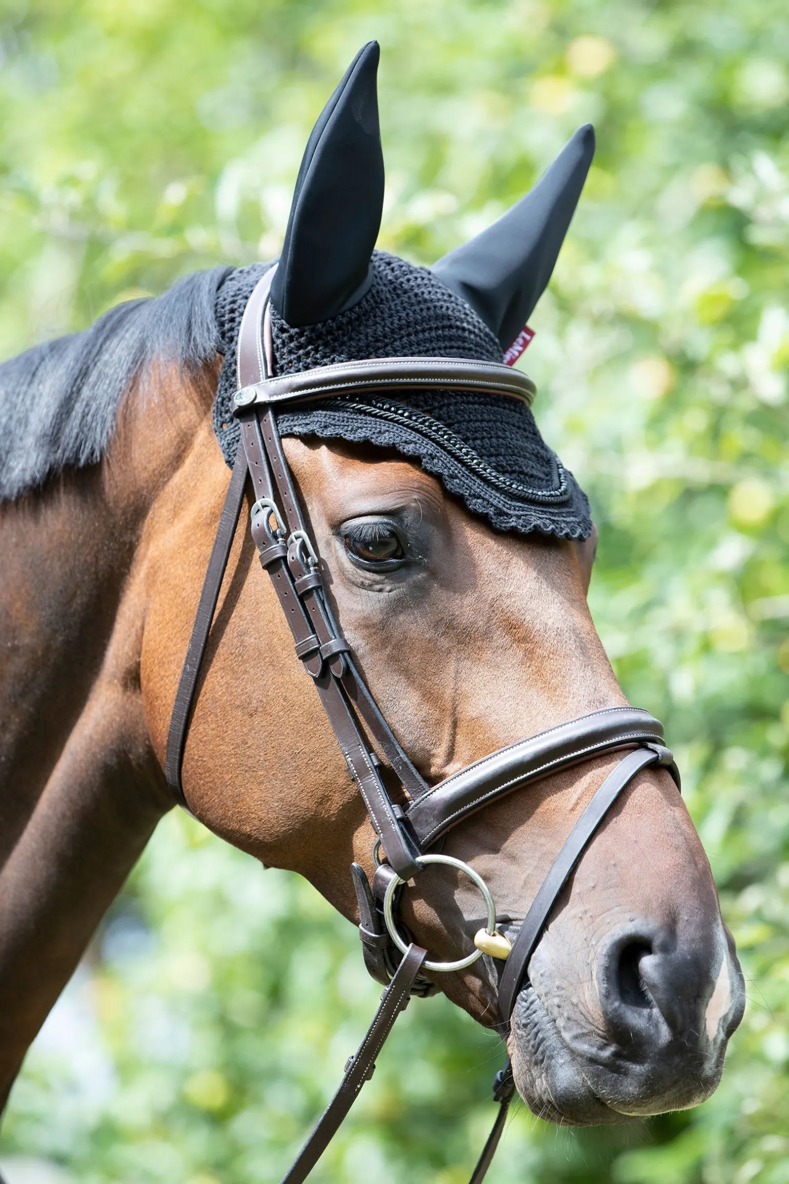 Die neu designte Diamante Akustik-Fliegenohren vereint alle bewährten Eigenschaften der Acoustic-Reihe mit einer verbesserten Passform für anatomisch geformte Trensenkopfteile. Der tiefere Schnitt hinter den Ohren sorgt für sicheren Sitz, während die ergonomische, flache Form rund um die Ohren höchsten Tragekomfort bietet. Diese akustischen Fliegenohren sind gemäß Regel Nr. 134 der British Dressage für alle Prüfungen zugelassen: „Ohrenhauben und Fliegenohren sind in allen Wettbewerben erlaubt und dürfen auch zur Geräuschdämmung verwendet werden. Sie dürfen jedoch nicht die Augen des Pferdes bedecken und sollten in Farbe und Design dezent sein.“