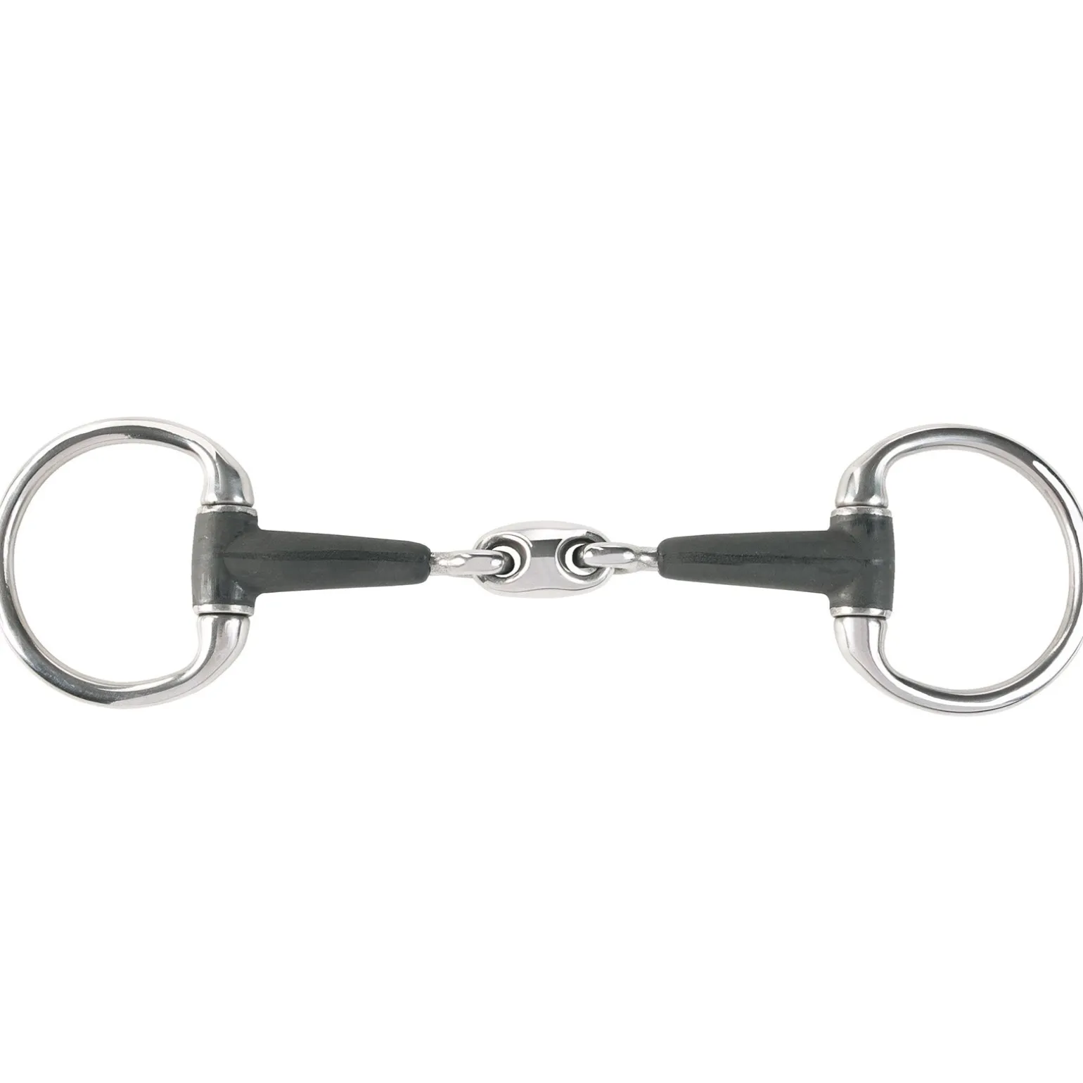 Olivenkopfgebisse sind sehr vielseitig einsetzbar. Diese mit Gummi überzogene Option schont die Maulwinkel und ein doppelt gebrochenes Mundstück sorgt für mehr Kontakt. Gummigebisse kommen empfindlichen Pferden zugute, da das Mundstück flexibel ist und das Gummi das Kauen und Speicheln anregt.