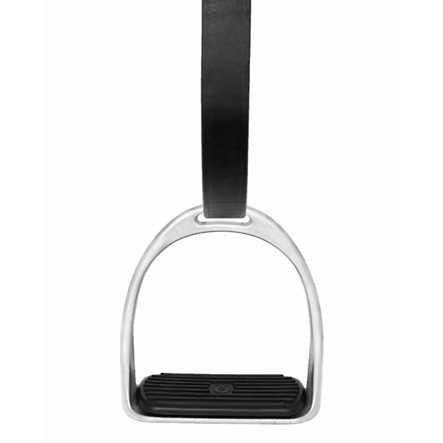 Vernickelte Steigbügel die aussehen wie echter, rostfreier Edelstahl für einen Bruchteil der Kosten. Das schöne, klassische Paar ist mit schwarzen, gerippten Gummi-Einlagen erhältlich.