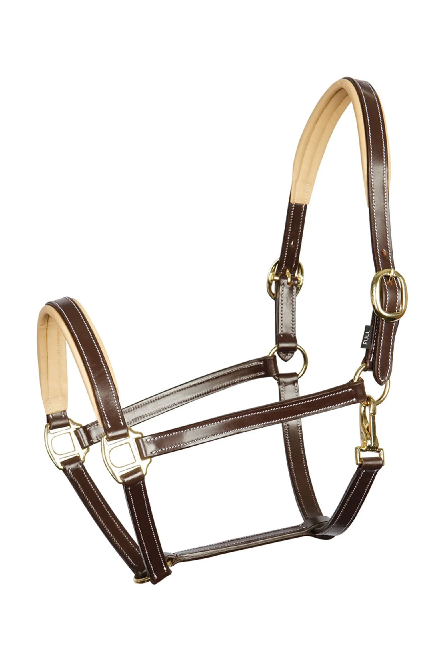 Lederhalfter. Verstellbar an Genickstück (doppelt) und Kinn.
